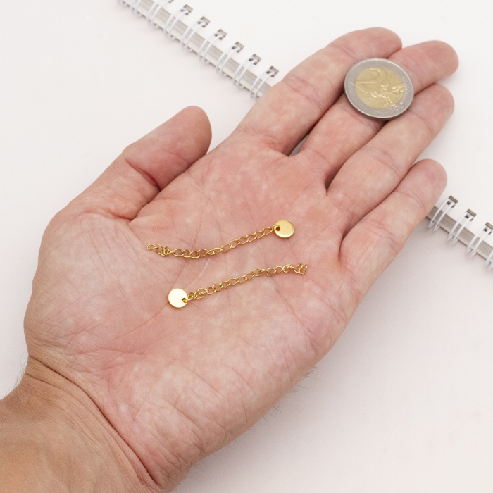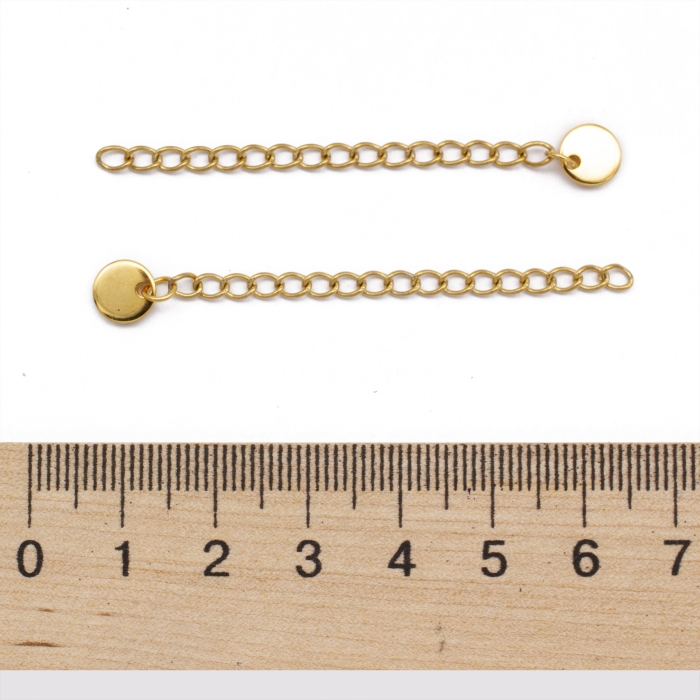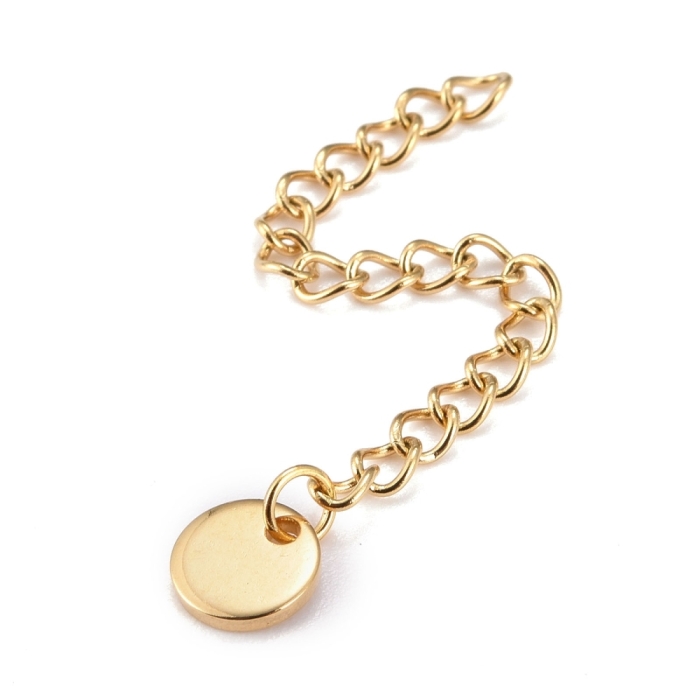 Цепочка Удлинительная с Подвеской, Нержавеющая Сталь, Золото, 57-60мм, Звено 3.7х3х0.5мм, Кулон 7х1мм, (УТ100029708)