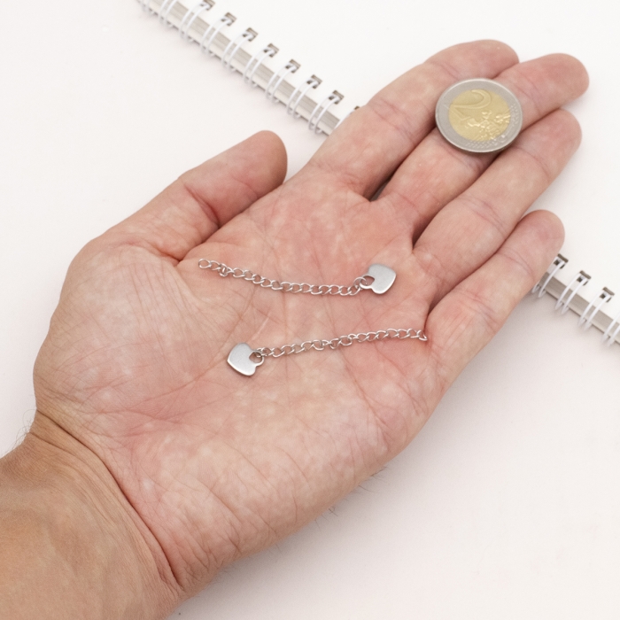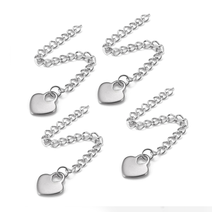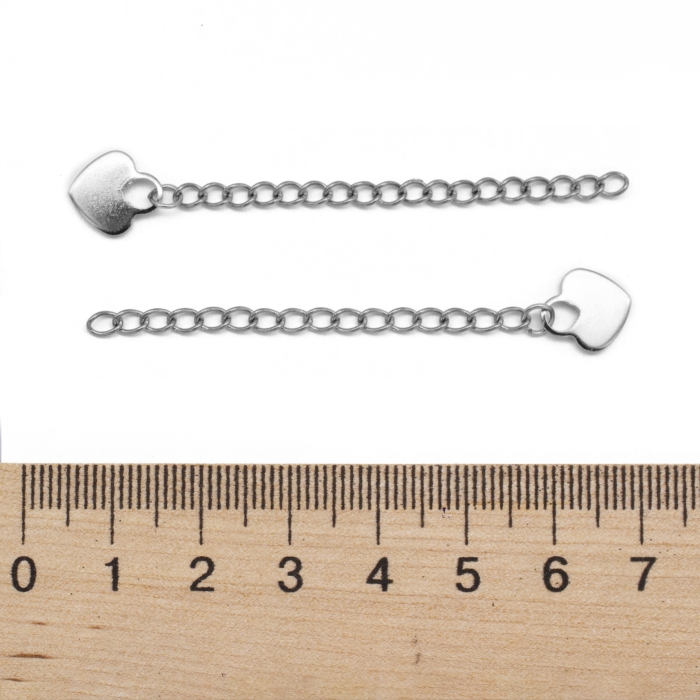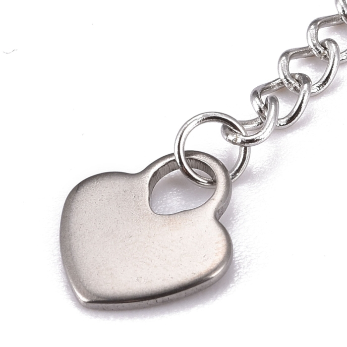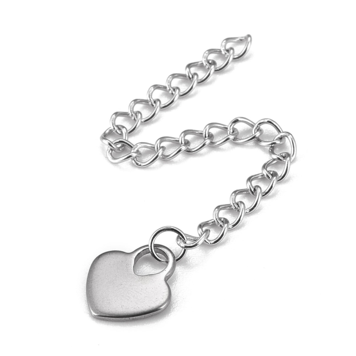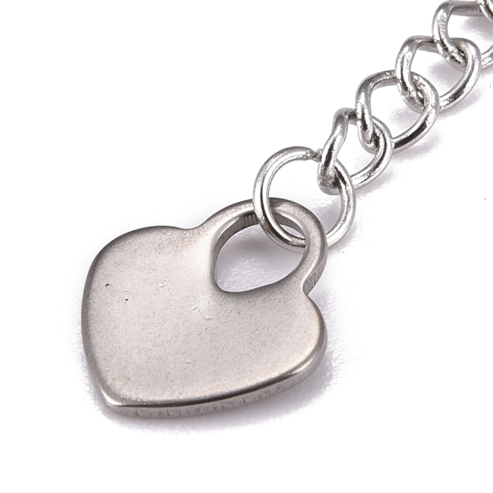 Цепочка удлинительная с Подвеской Сердце, Нержавеющая Сталь, 59-65мм, Звено: 3.7х3х0.5мм, Подвеска 9.8х11х1мм, (УТ100029709)