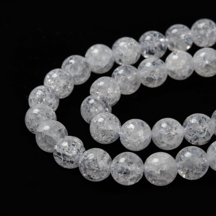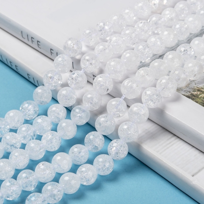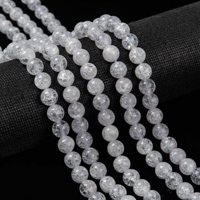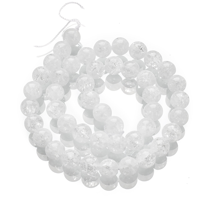 Бусины Натуральный Кварц Кракле, Круглые, на нитях, Цвет: Белый, 8мм, Отв. 1мм, около 45шт/36см/нить, (УТ100029804)