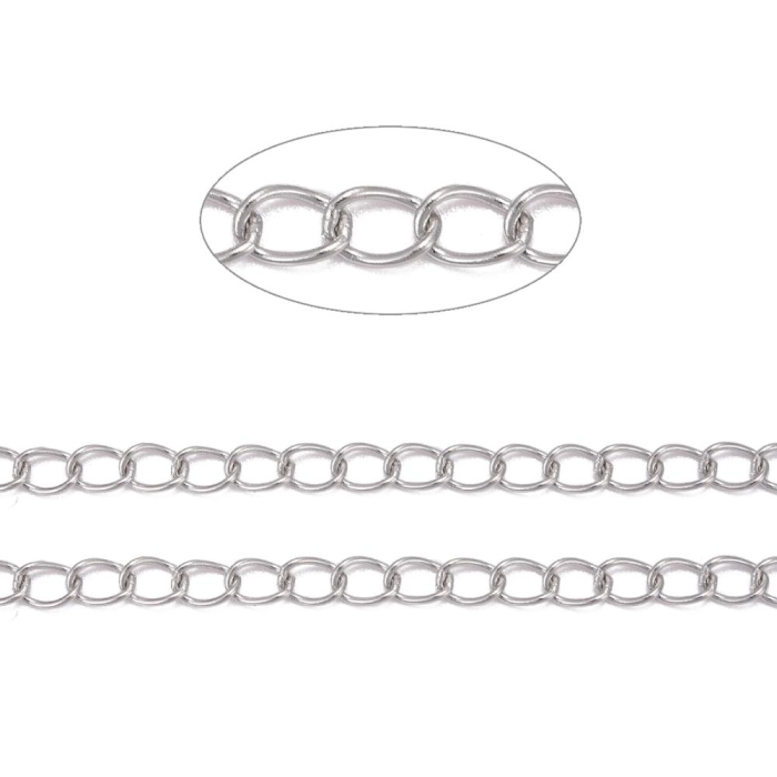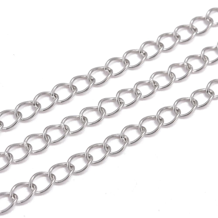 Цепь Витая, Нержавеющая Сталь, Паяная, Размер звена: 5х3.5х0.6мм, 10м/катушка, (УТ100030226)