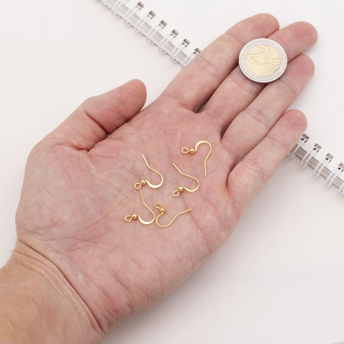 Швензы Крючок, Основа для Сережек, Медицинская Сталь, Покрытие Позолотой 18К, 16х16-19.5х3мм, Штифт 0.7мм, Отверстие 2мм, (УТ100030249)
