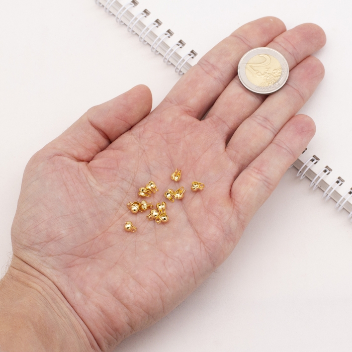 Эти калоты предназначены для скрытия узлов на концах нитей украшения и для соединения нитей с застежкой, обеспечивая законченный и профессиональный вид бижутерии. Их стандартный стиль представляет собой петлю с отверстием в нижней части и петлю для крепления. Калоты помогают вашему украшению выглядеть стильно и аккуратно, придавая ему завершенность и элегантность.