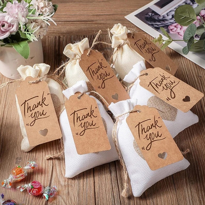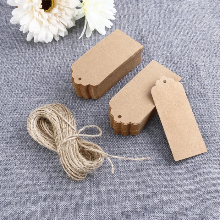 Бирки Подарочные Крафтовые с Пеньковым Шнуром, Прямоугольные, 5х3см, 100шт/упак, (УТ100030668)