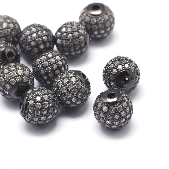 Бусины из Латуни с Фианитами, Круглые, Стойкое Покрытие Оружейная Сталь.
