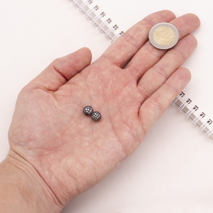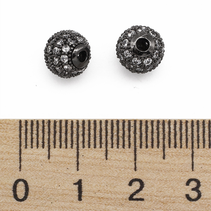 Бусины Латунь с Фианитами, Круглые, Стойкое Покрытие Оружейная сталь, Размер: 8х7мм, Отверстие 2мм, (УТ100030807)