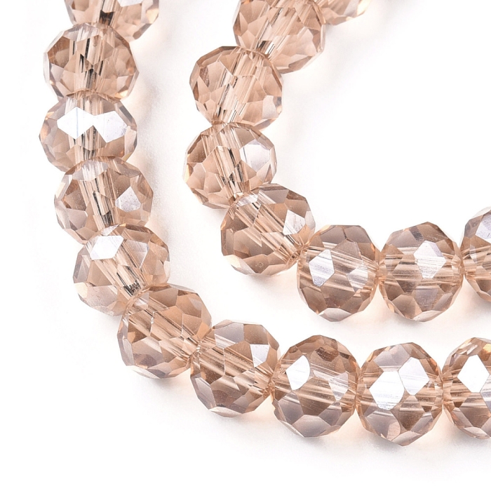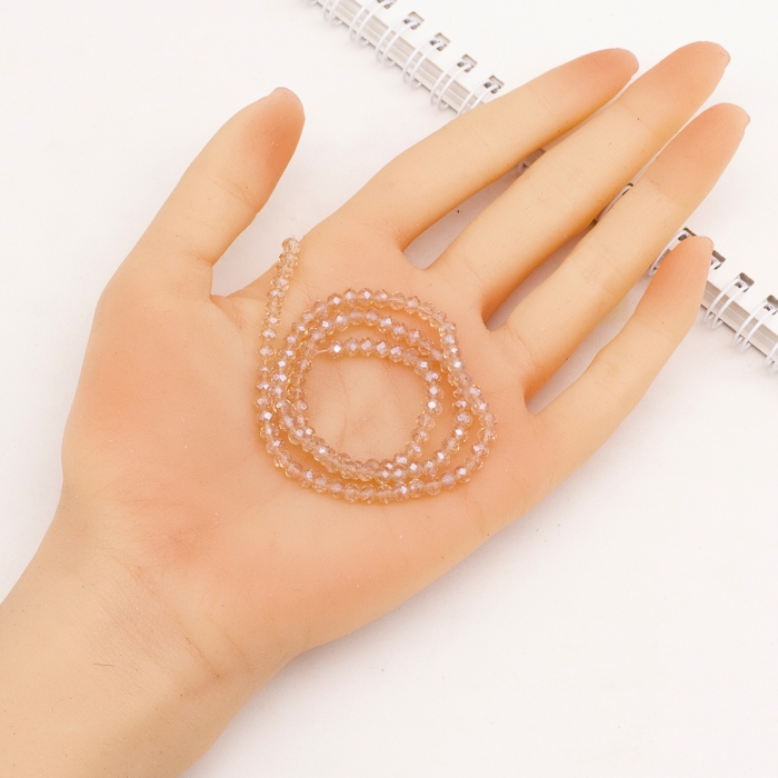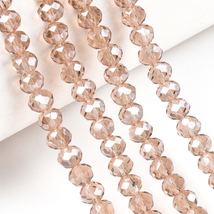 Намистини Скляні Гальваніка Рондель Гранені, Перламутрове Покриття, Персиковий, 4х3мм, Отвір 0.4мм, близько 110шт/40см/нитка. (УТ100031562)