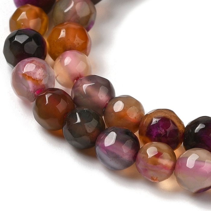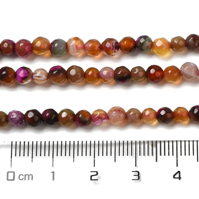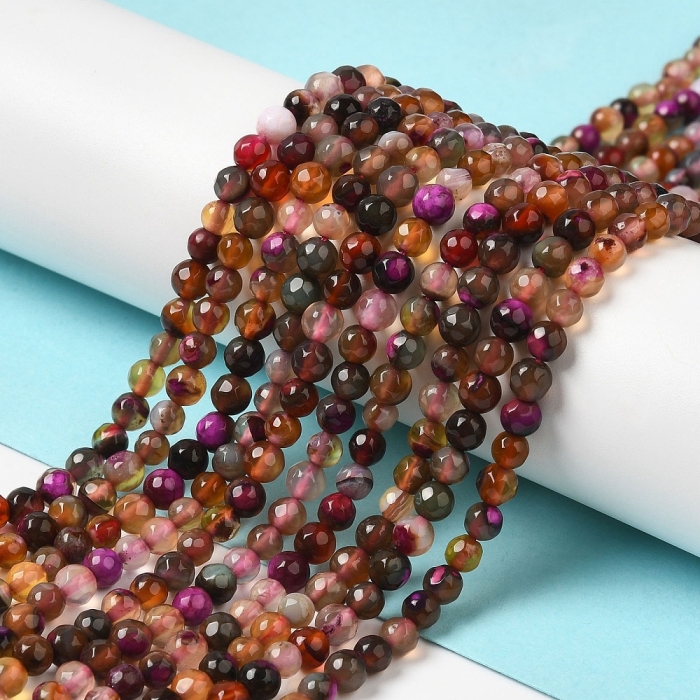 Намистини Натуральний Агат, Термофарбовані, Грановані, Круглі, на нитках. Колір: Сієнна