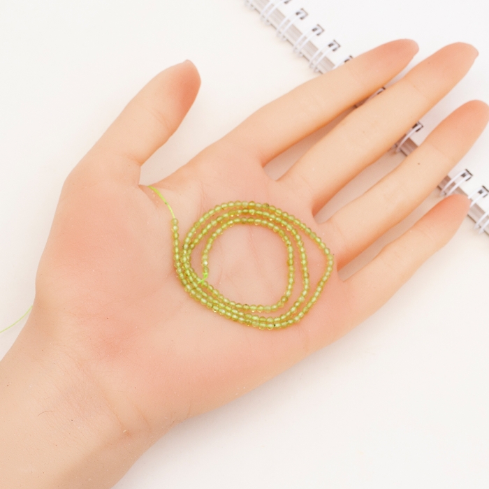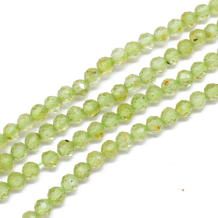 Намистини Натуральний Перидот Круглі Грановані, Незабарвлені, на нитках Країна походження каменю: Бразилія
