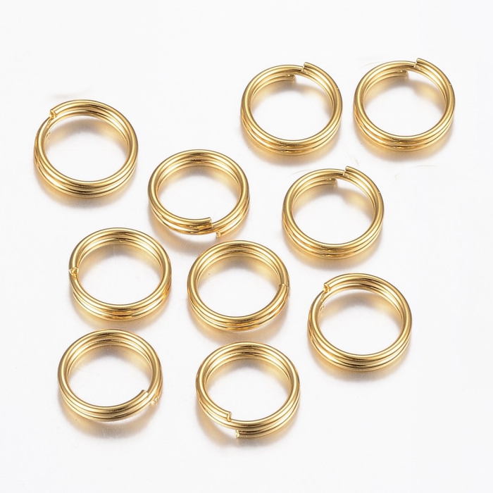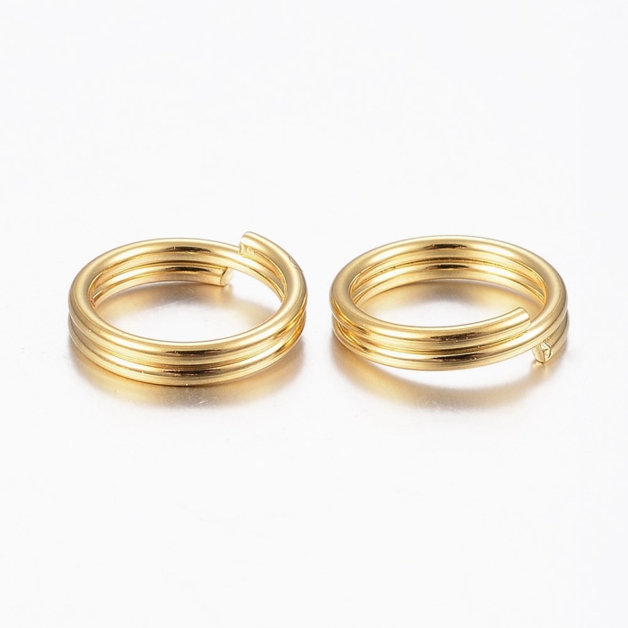 Подвійні з'єднувальні кільця з нержавіючої сталі - це міцний і надійний елемент фурнітури для складання прикрас. Діаметр 8 мм і товщина 1.5 мм забезпечують високу стійкість до деформації, а подвійна конструкція запобігає мимовільному розкриттю. Завдяки стійкому гальванічному покриттю зберігають насичений золотий блиск і не темніють з часом.