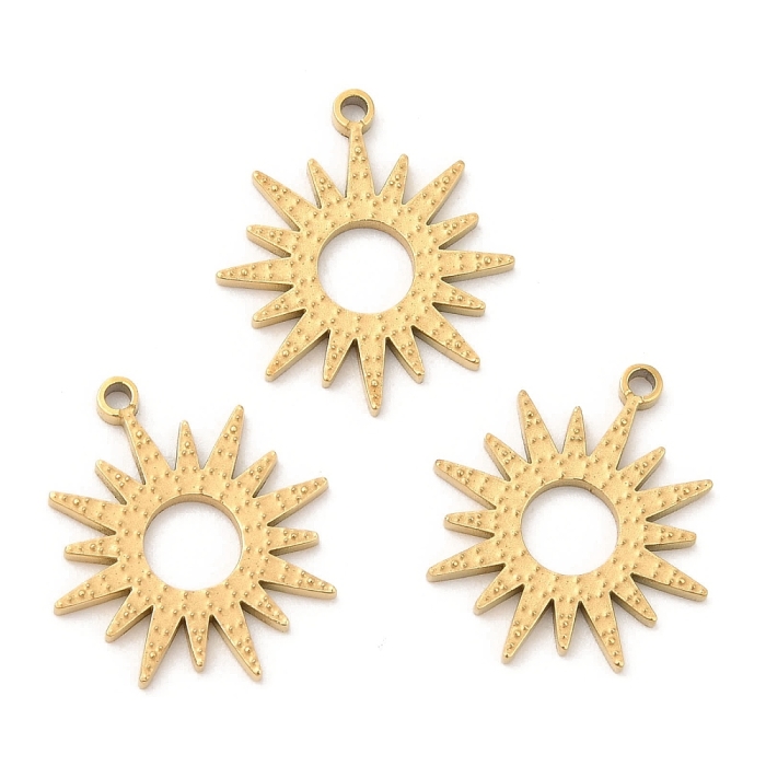 Підвіски Сонце з Медичної Сталі, Іонне Покриття (IP), без Нікеля, Позолота 18К завтовшки 0.01~0.03мкм (золото 750 проба)