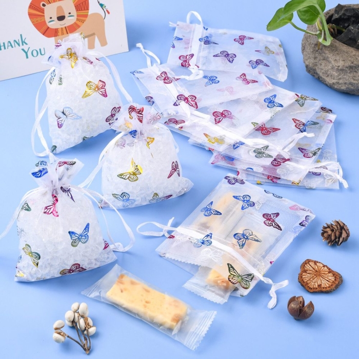 Подарункові Мішечки з Органзи з Кулискою Прозорі з Малюнком Метелик