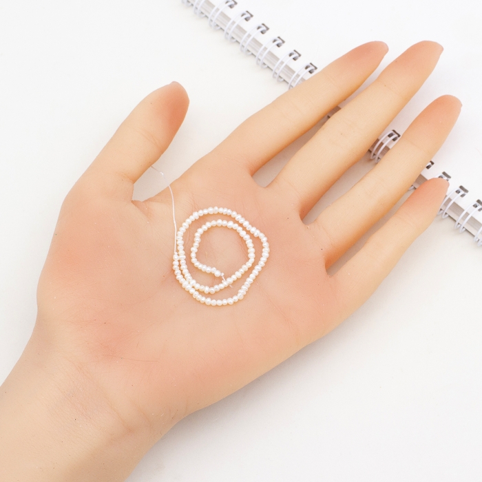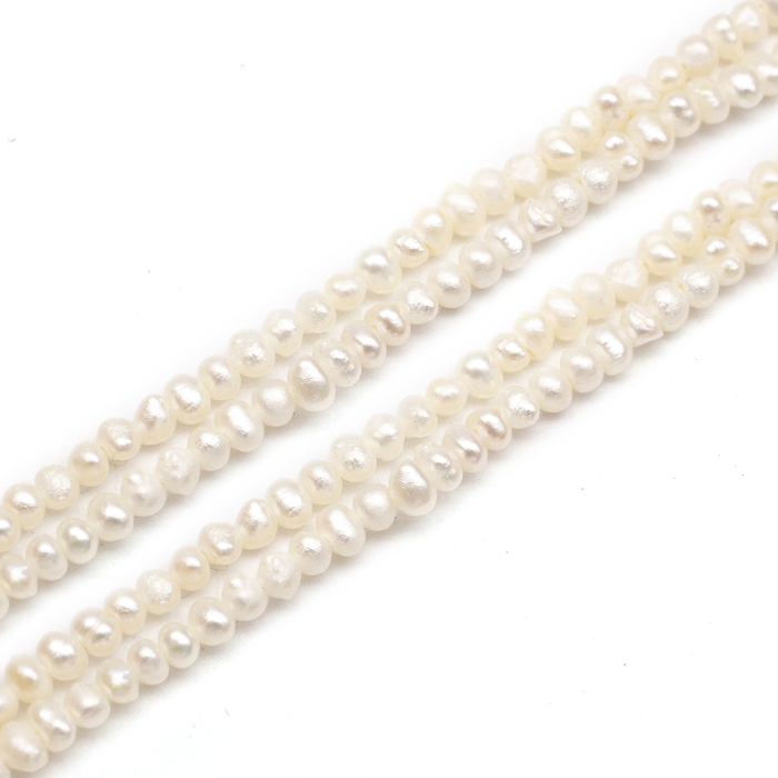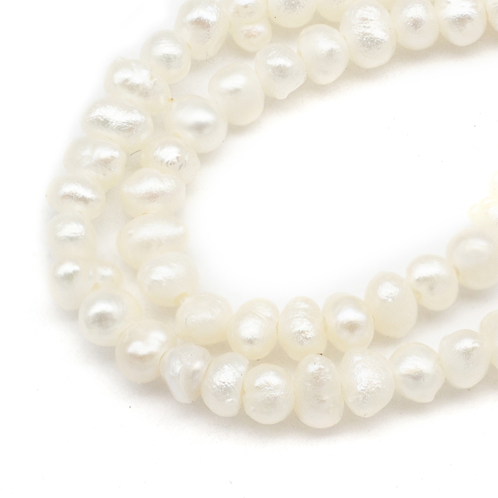 Ці ніжні намистини з натурального перлів вирізняються природним переливом та легкими варіаціями форми, що підкреслюють їхнє природне походження. Перли не фарбовані й зберігають свій природний відтінок, завдяки чому прикраси з ними виглядають особливо витончено та елегантно.