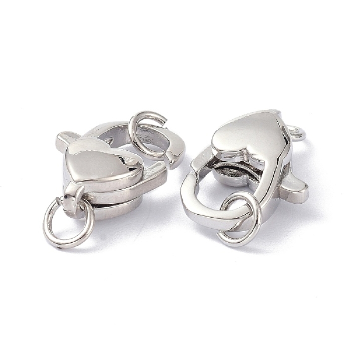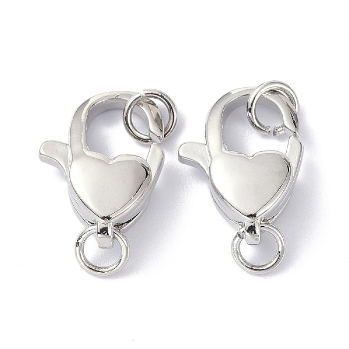 Застібка Карабін-Лобстер з Екологічної Латуні у формі Серця з сполучними кільцями, Колір: Платина,