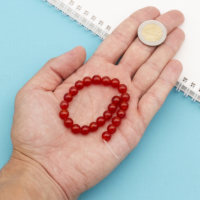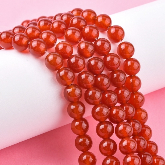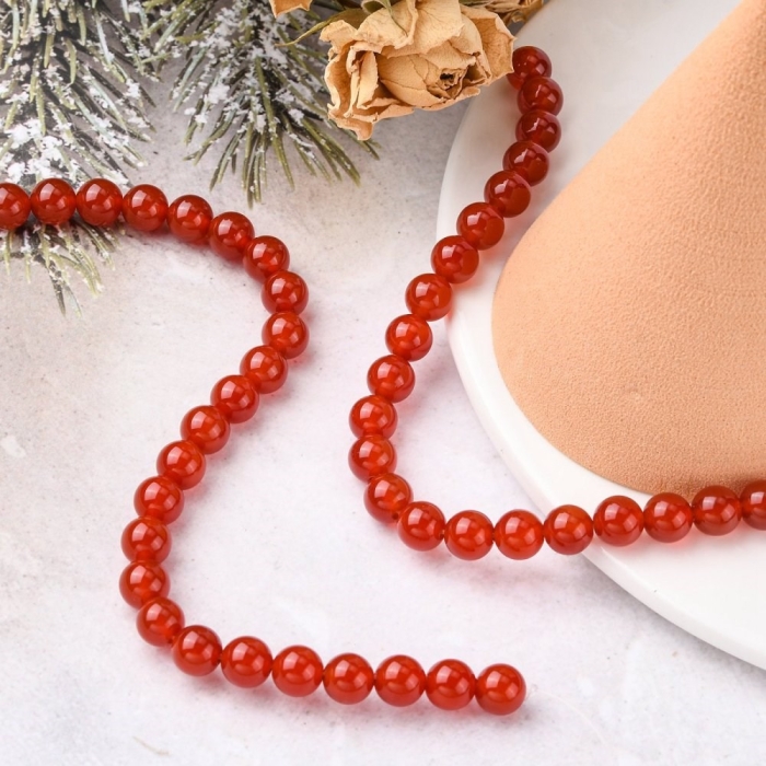 Намистини Натуральний Червоний Агат клас А, На нитках, Круглі, 8 мм, Отвір 1мм, близько 23шт / 17см / нитка, (УТ000005397)