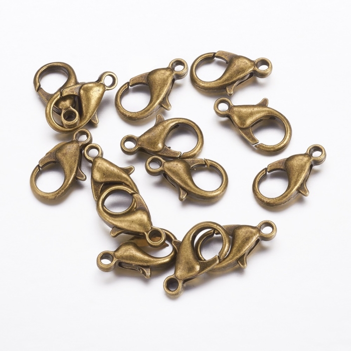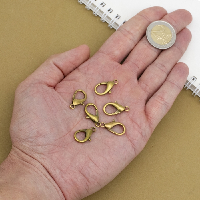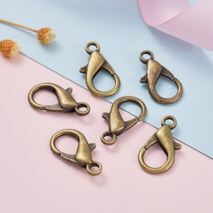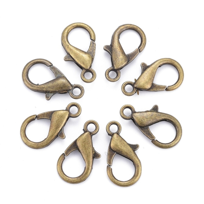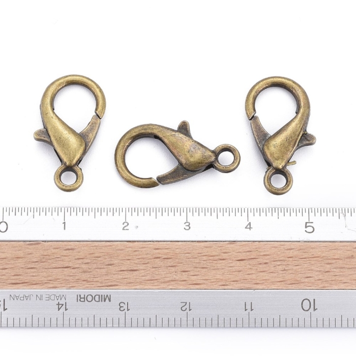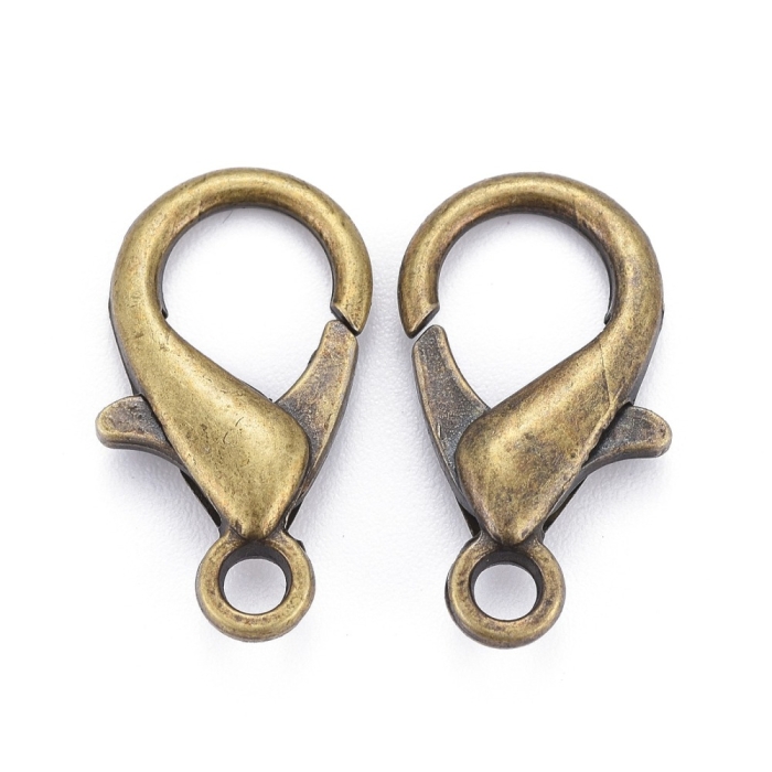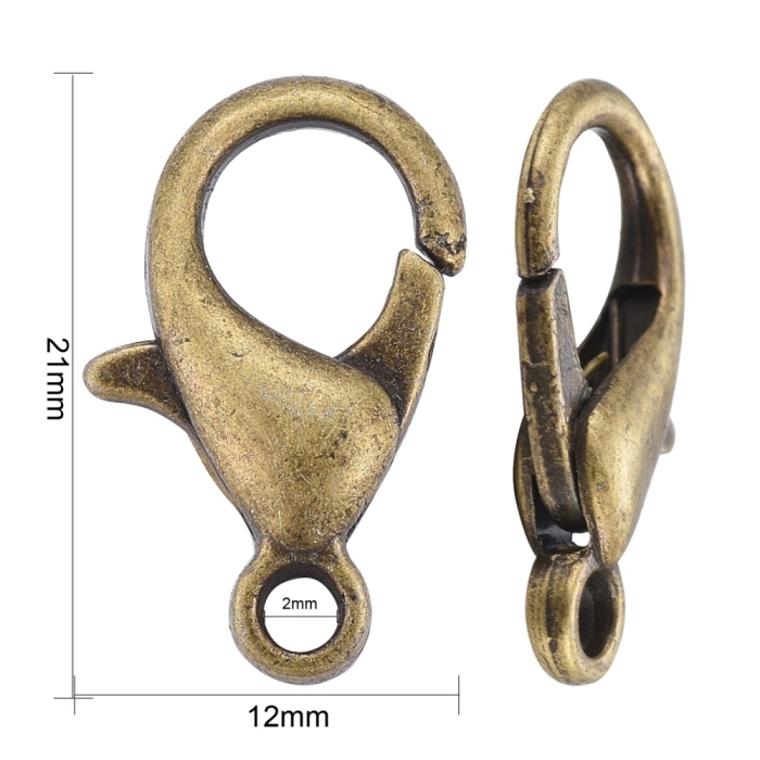 Застібка Карабін-Лобстер зі Сплаву, Бронзовий Колір, 21х12мм, Отвір 2мм, (УТ000007621)