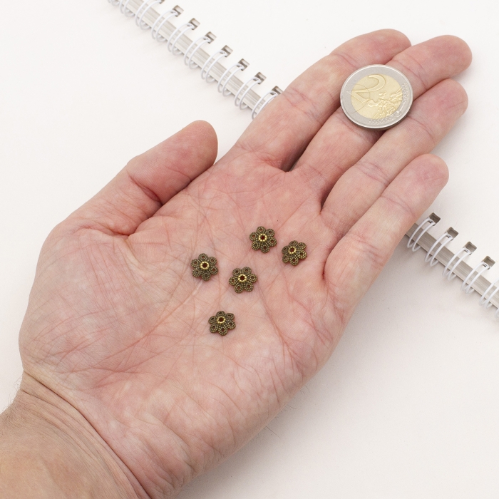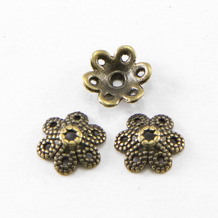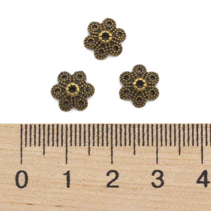 Шапочки для Намистин Квітка Сплав, Бронзовий Колір, 9.5х10х3мм, Отвір 1.5мм, (УТ0001806)