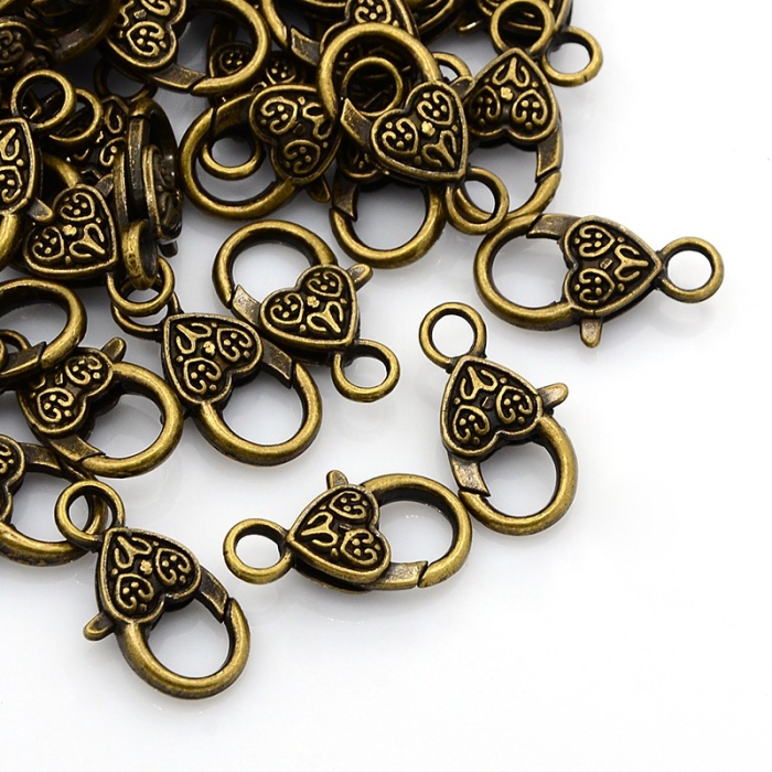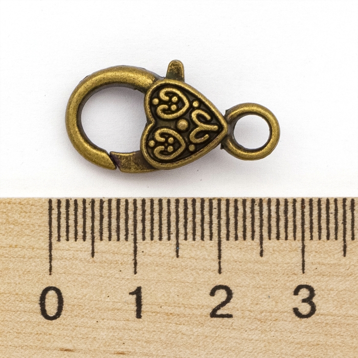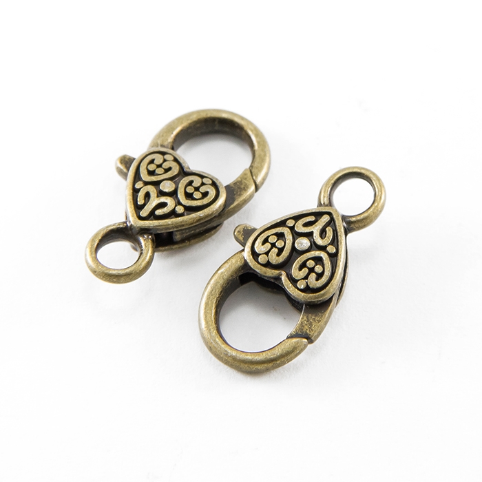 Застібка Карабін-Лобстер із Сплаву Серце, Бронза, 25.5х14х6мм, Отвір 4мм, (УТ0003131)