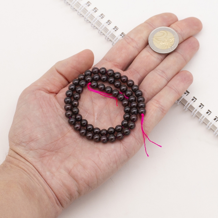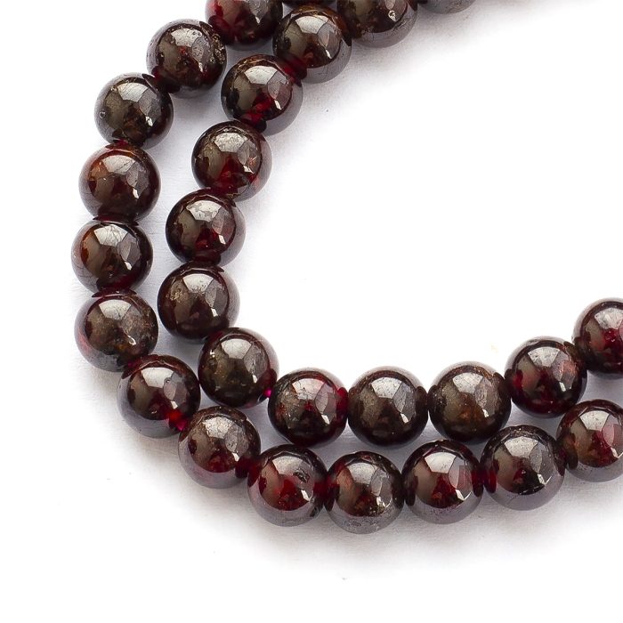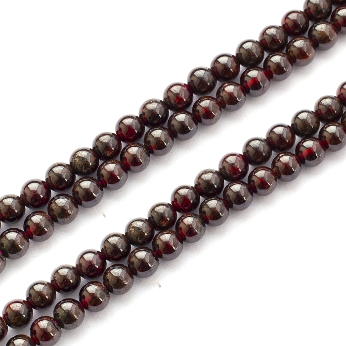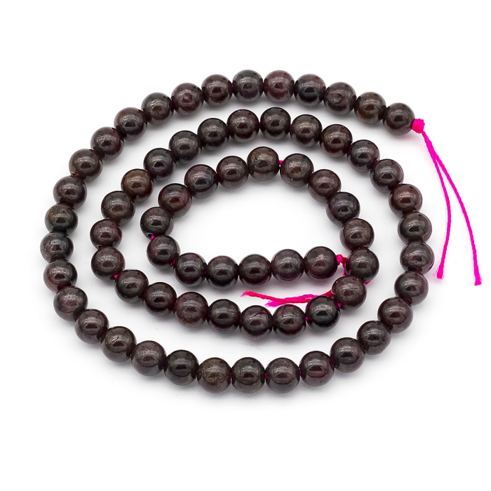 Намистини Натуральний Гранат Клас B, На нитках, Круглі, Колір: Бордовий, Розмір: 6мм, Отвір 1мм, близько 64шт / 38см / нитка, (УТ0003735)