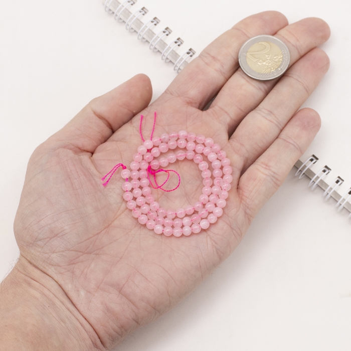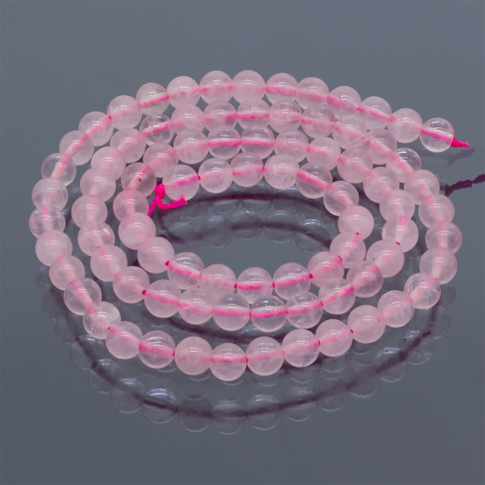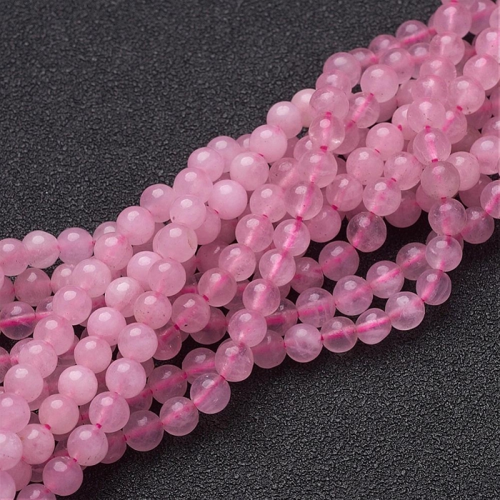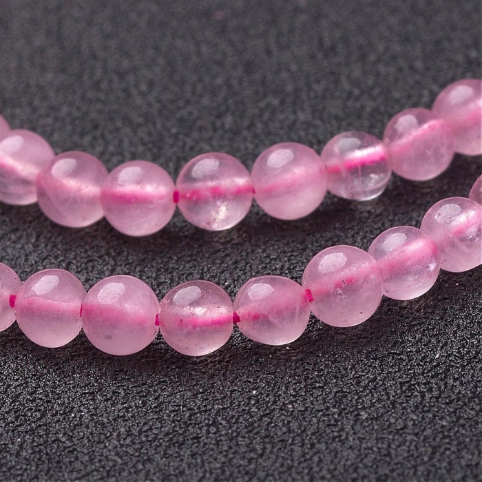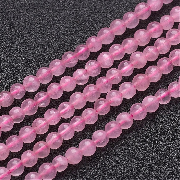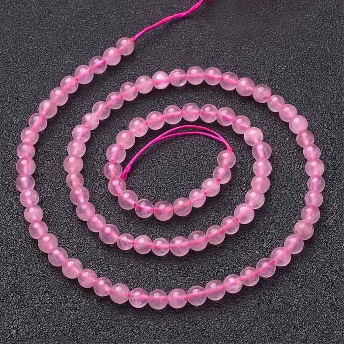 Намистини Натуральний Рожевий Кварц, На нитках, Круглі, 4мм, Отвір 0.8мм, близько 80шт/34см/нитка, (УТ0030822)