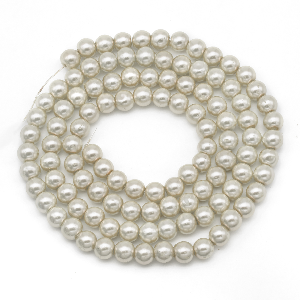 Перли Намистини Скло, Глянцеві, Круглі, Колір: слонова кістка, Діаметр: 8 мм, Отв-тя 1мм, близько 90шт / 72см / нитка, (УТ100007114)