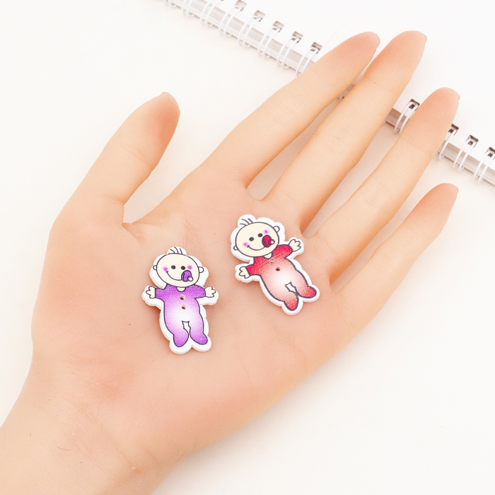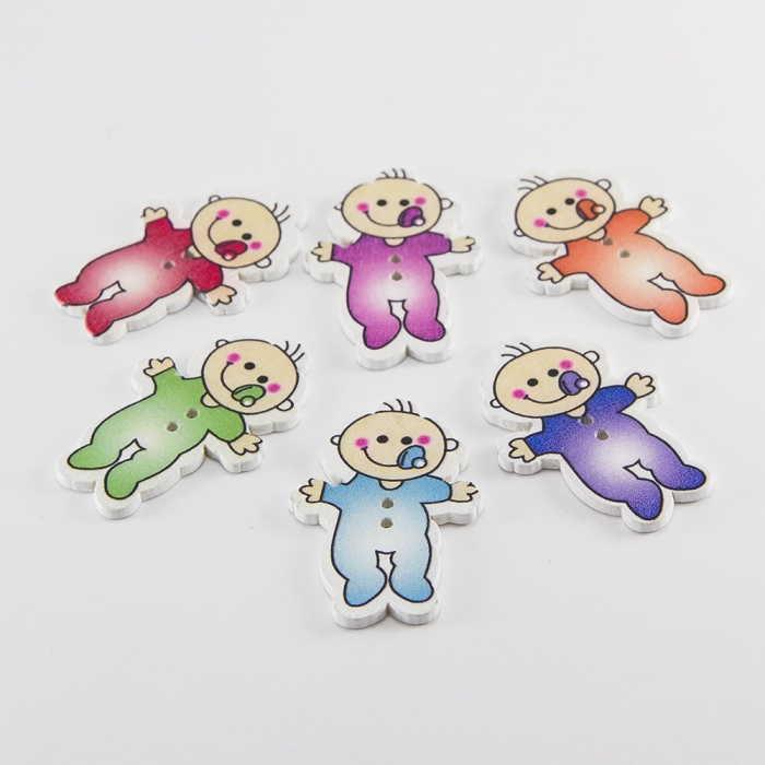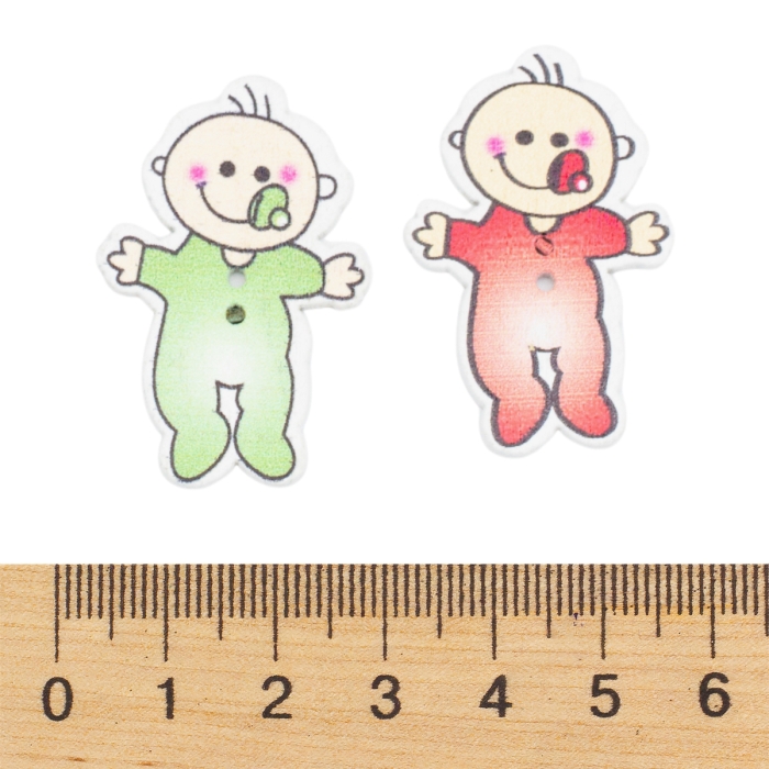 Ґудзики Дерев'яні Малюк, 2-Отвіри, Колір: Мікс, Розмір: 39х26х2мм, Отвір: 1.5мм, (УТ100009604)