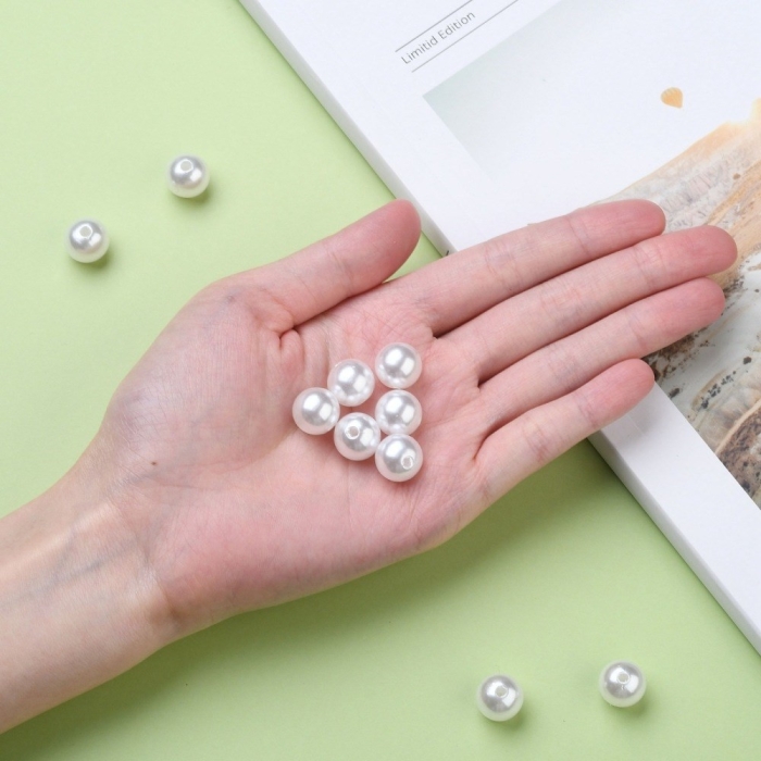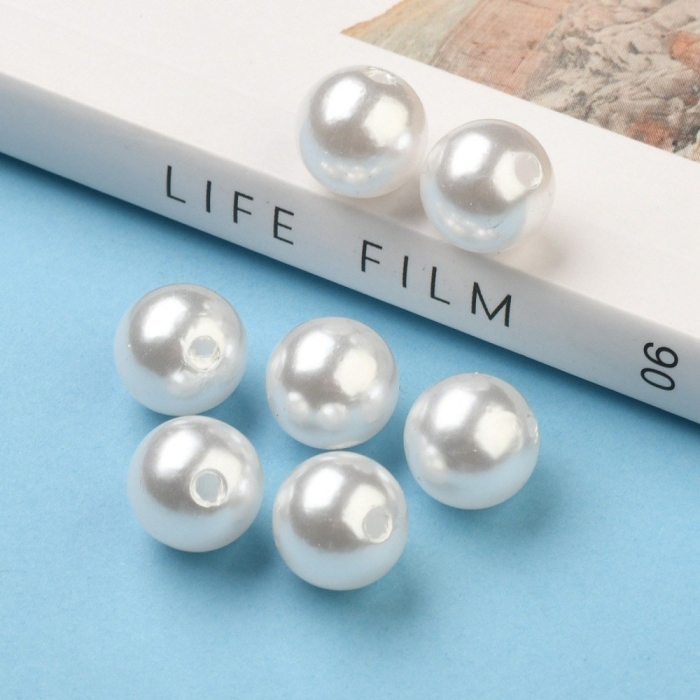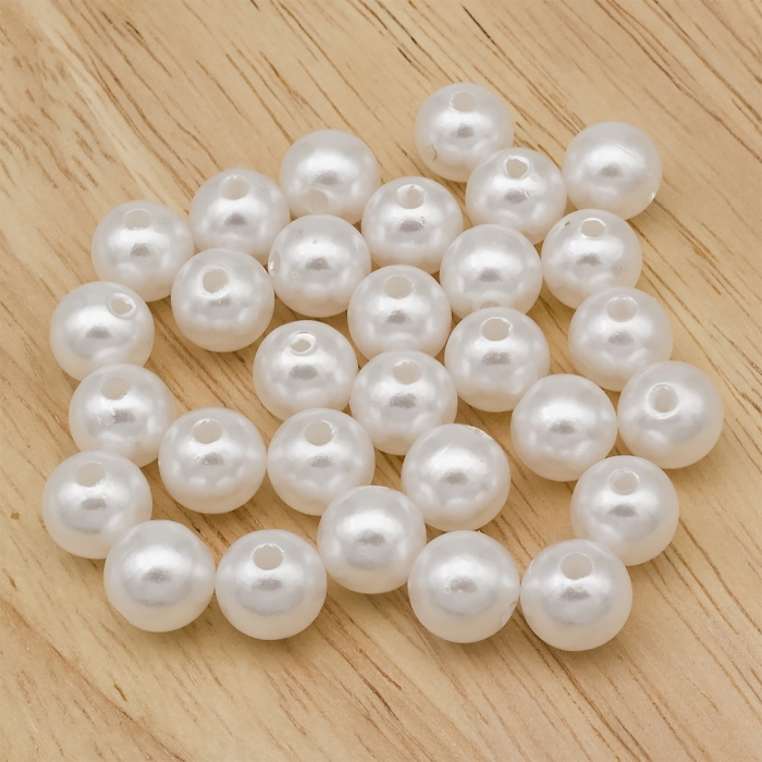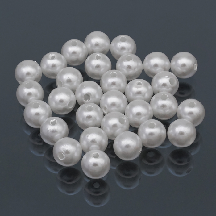 Перли Намистини Акрилові Круглі Глянцеві, Білий, 10мм, Отвір 2.5мм, близько 50шт/25г, (УТ100014130)