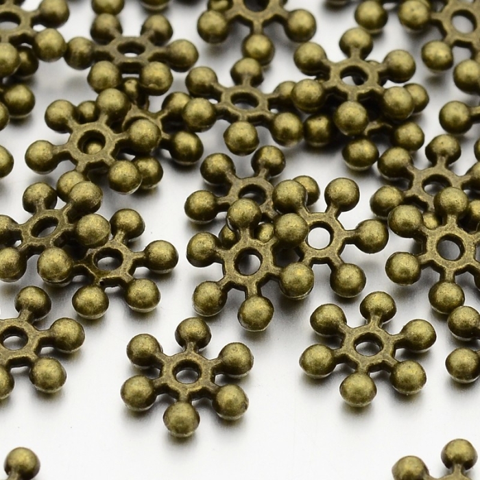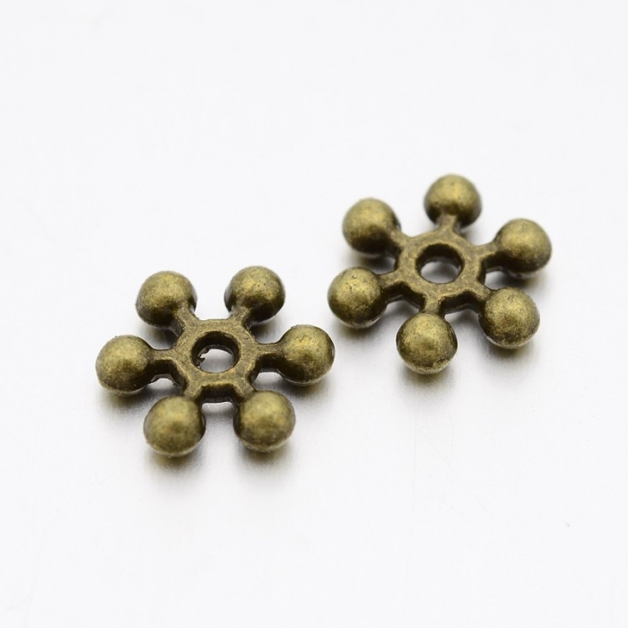 Намистини-Роздільники, Сплав, Форма: Сніжинка, Колір: Бронза, Розмір: 10х2.5мм, Отвір 1.5мм, (УТ100015106)