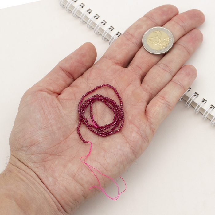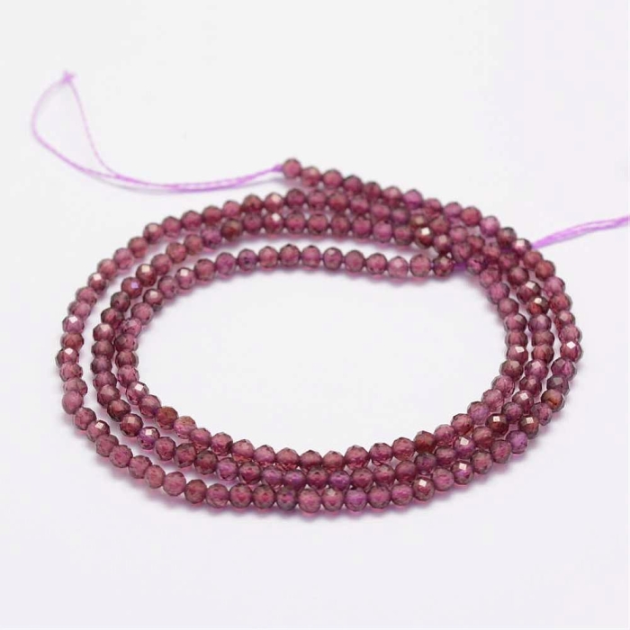 Намистини Натуральний Гранат, на нитках, Круглі, Грановані, Малиновий, 2 мм, Отвір 0.5мм, близько 170шт / 37см / нитка, (УТ100017961)