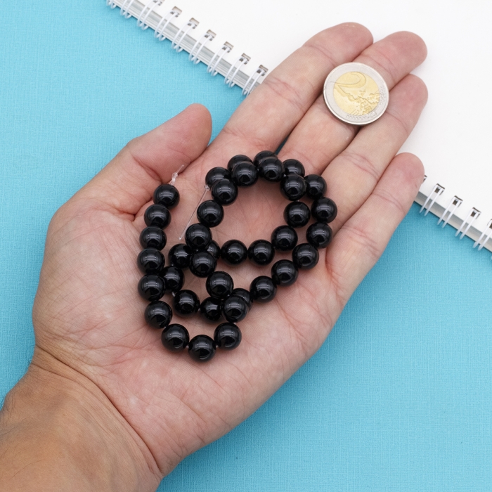 Намистини Натуральний Чорний Агат, Круглі, Колір: Чорний, Розмір: 10мм, Отвір 1.5мм, близько 35шт / 34см / нитка, (УТ100019226)