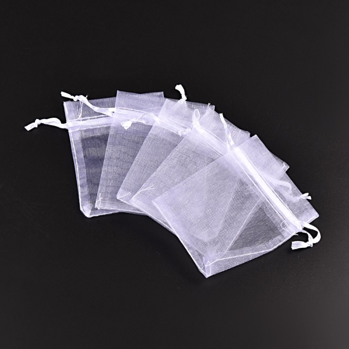 Подарунковий Мішечок з Органзи з Кулісою Прозорий, Білий, 9x7см, (УТ100019266)