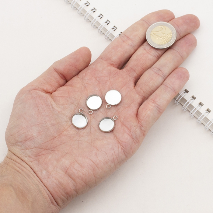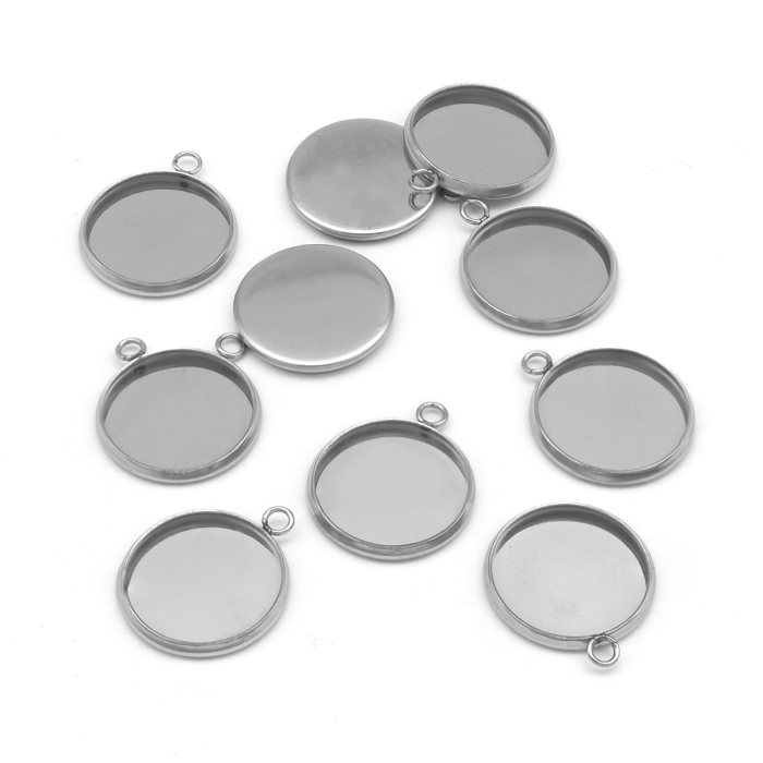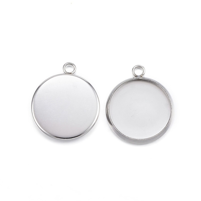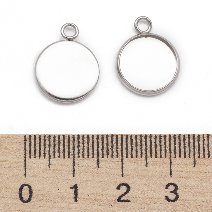Кулон-Сеттинг Круглий під Кабошон, Нержавіюча Сталь, 17x14x2мм, Внутрішній Діаметр 12мм, Отвір 2мм, (УТ100021647)