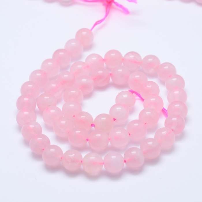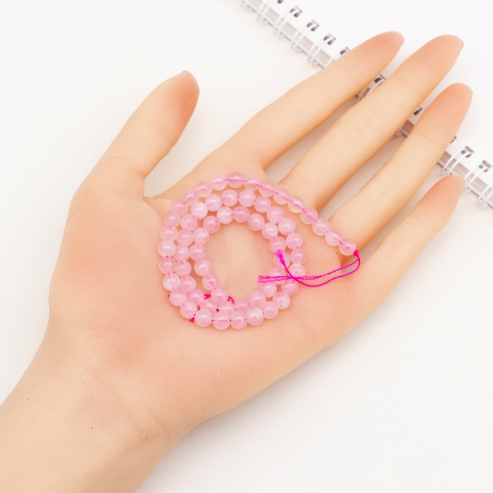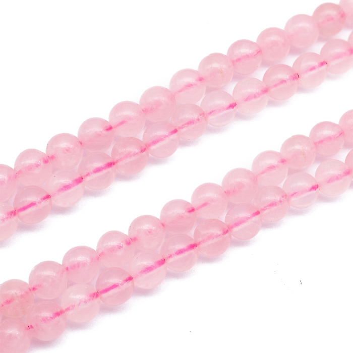Намистини Натуральний Мадагаскарський Рожевий Кварц, Клас А, На нитках, Круглі, 6мм, Отвір 0.8мм, близько 60шт / 37см / нитка, (УТ100022826)