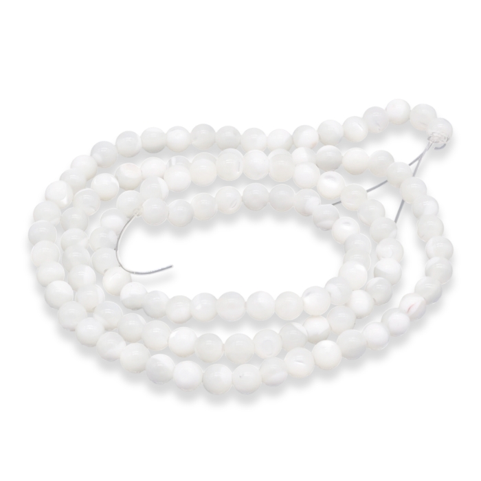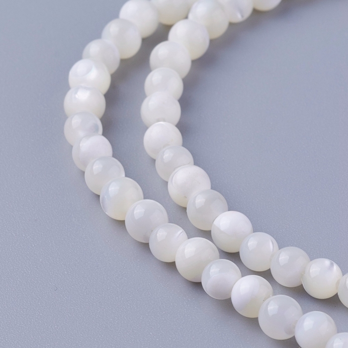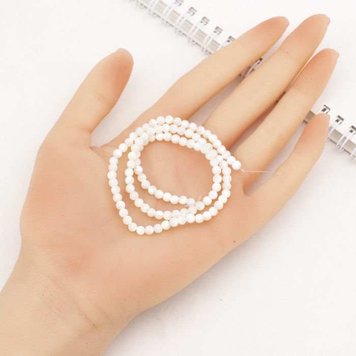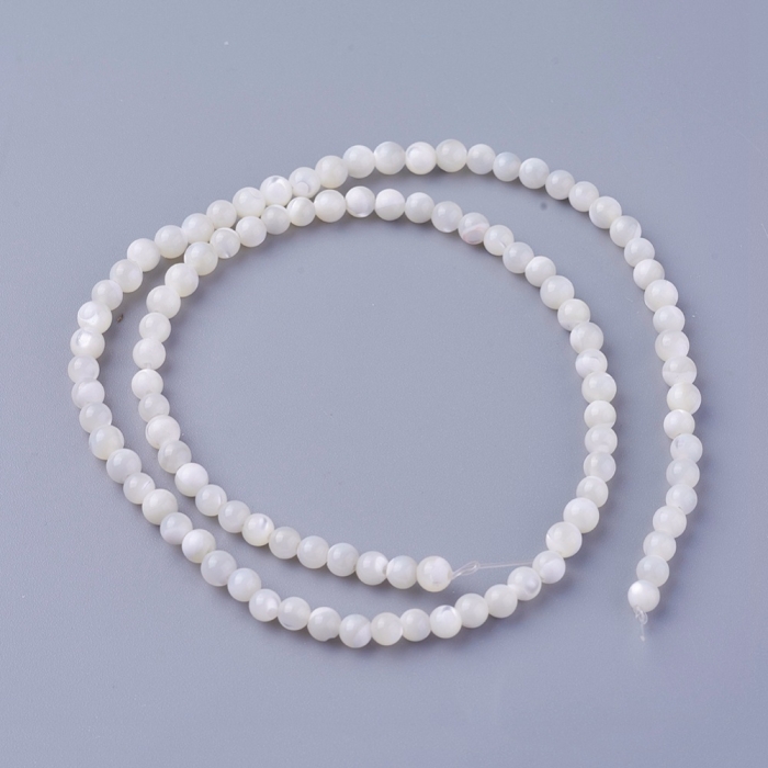 Намистини з Морських Ракушок Натуральний Перламутр Круглі, Білий, 3.7~4.5мм, Отвір 0.8мм, близько 95шт/38см/нитка, (УТ100022984)