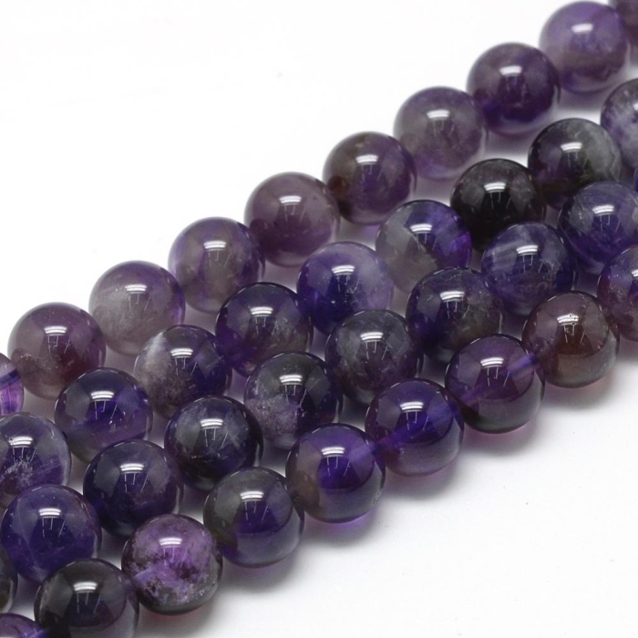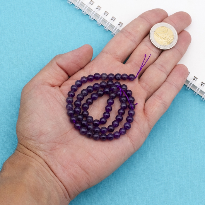 Намистини Натуральний Аметист, На нитках, Клас АВ, Круглі, Розмір: 6~7мм, Отвір 1мм, близько 60~67шт/37см/нитка, (УТ100023064)