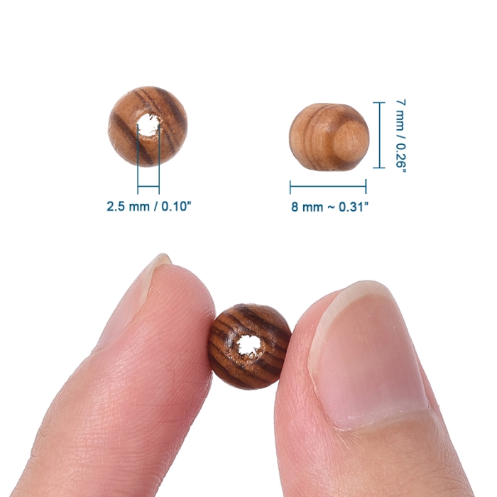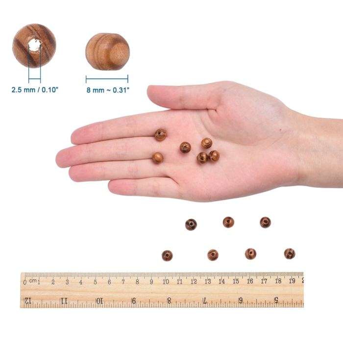 Намистини Дерев'яні Круглі Непофарбовані, 8мм, Отвір 2.5мм, близько 170шт/25г, (УТ100024963)Упак.: