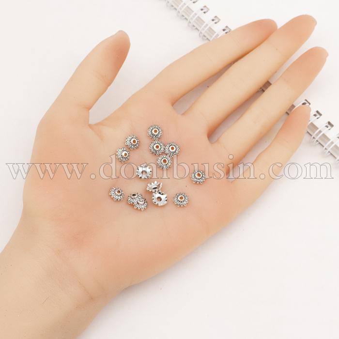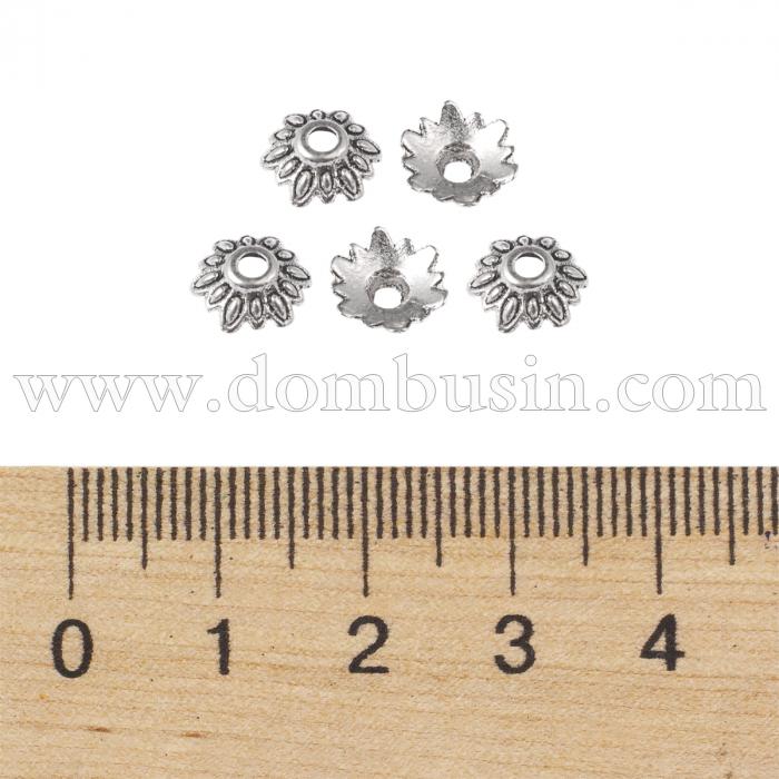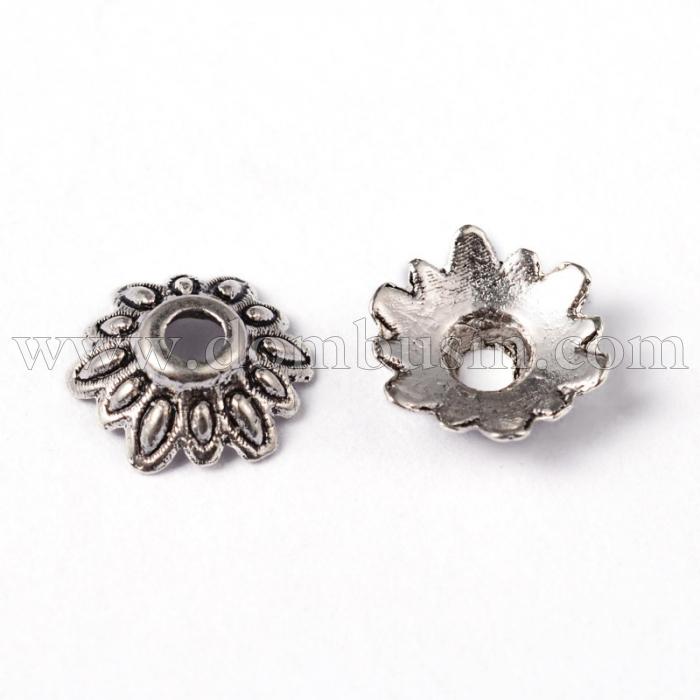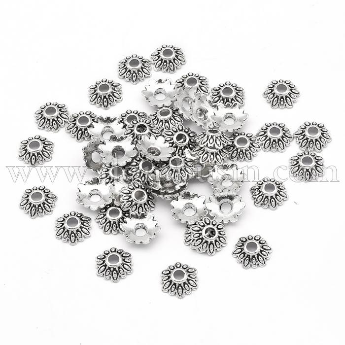 Шапочки для Намистин зі Сплаву Тибетський Стиль Квітка, Античне Срібло, 8х2.5мм, Отвір 2мм, (УТ100026201)Упак.: