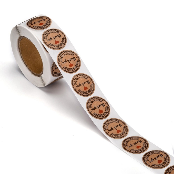 Наклейки Стікери Етикетки Подарункові Бірки з Крафт-Паперу, Бежевий, 25мм, 500шт/рулон, (УТ100022998)