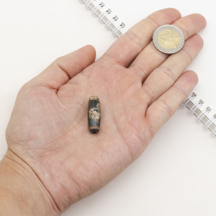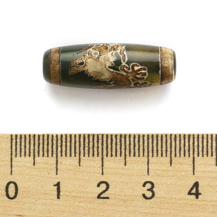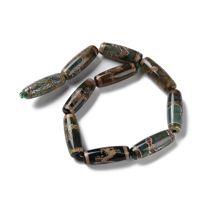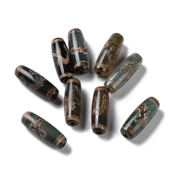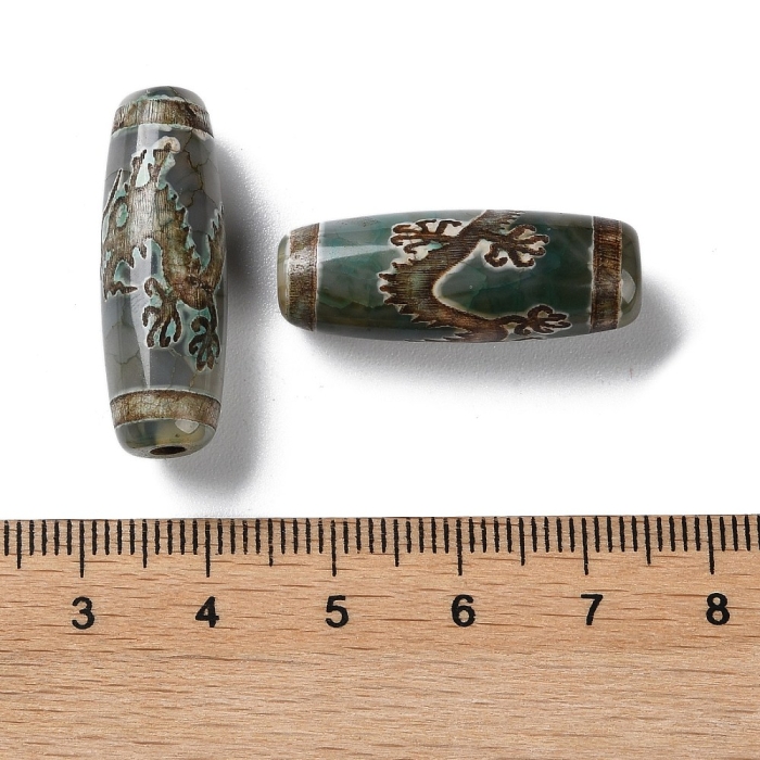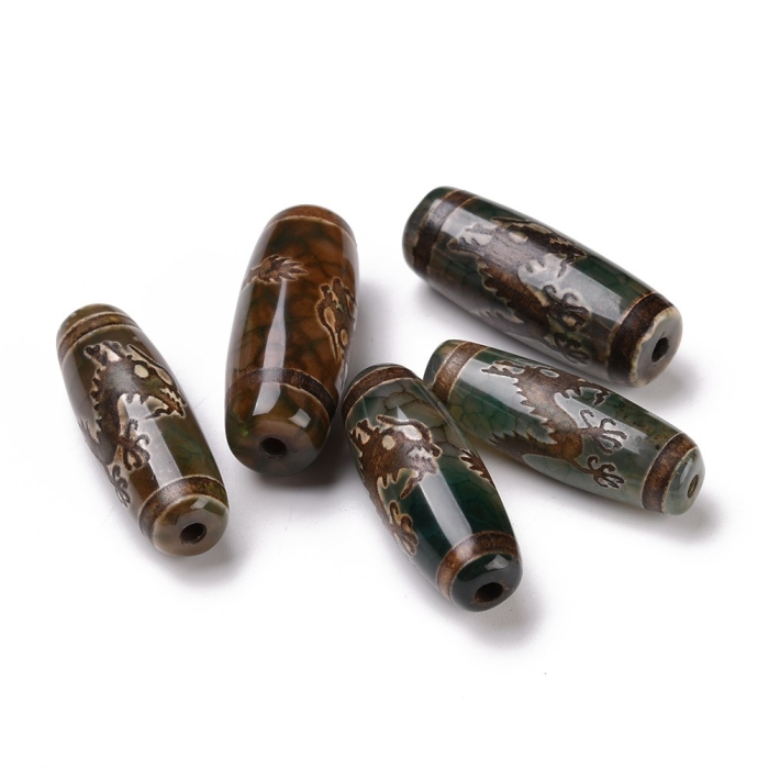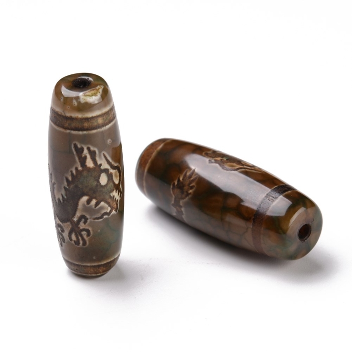 Намистини Натуральний Агат Дзі, Дракон, Овальні, Термопофарбовані, 28.5-32x10-12.5мм, Отвір 1.5-3мм, (УТ100026578)