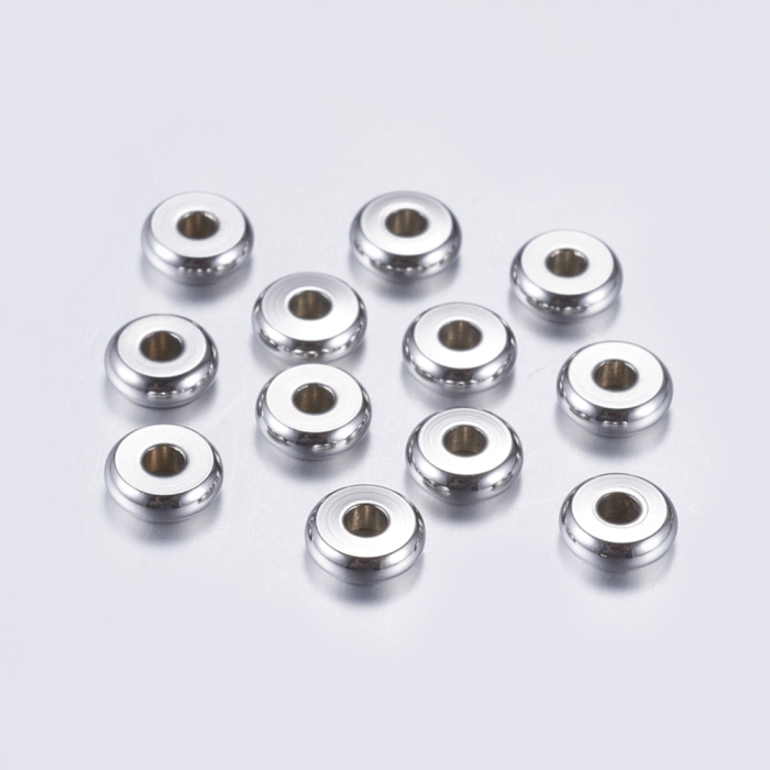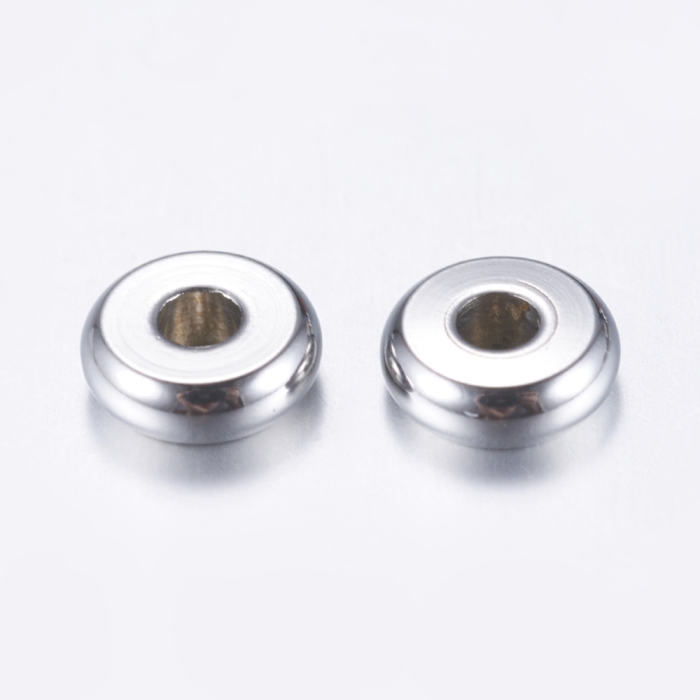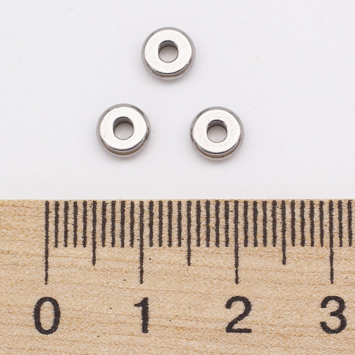 Намистини-Роздільники, Нержавіюча Сталь, Плоскі Круглі, Розмір: 6x2мм, Отвір 2мм, (УТ100026633)