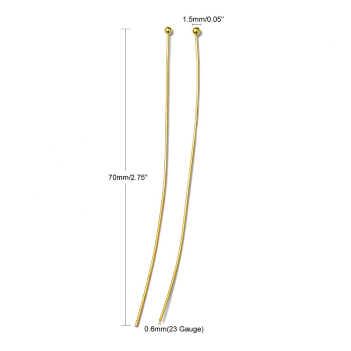 Піни з Шариком Латунь, Золото, 70х0.6мм, Кулька 1.5мм, (УТ100027966)