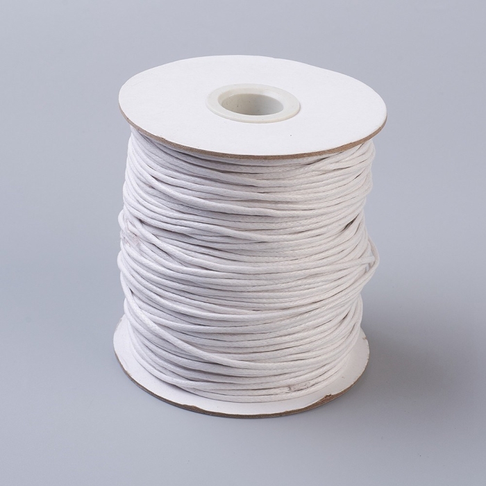 Шнур Вощений Бавовняний для плетіння, Макраме та біжутерії, Білий, 1.5мм, близько 90м/котушка, (УТ100028811)