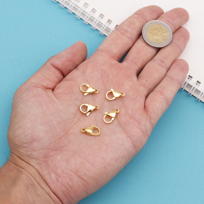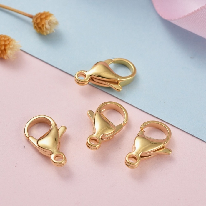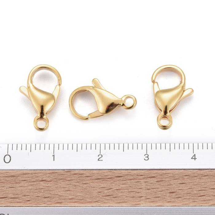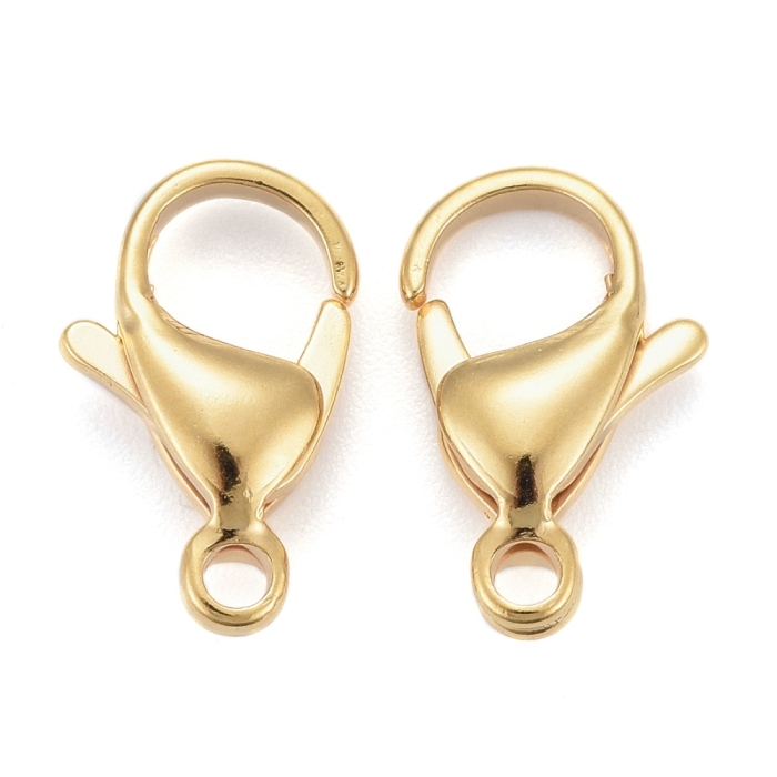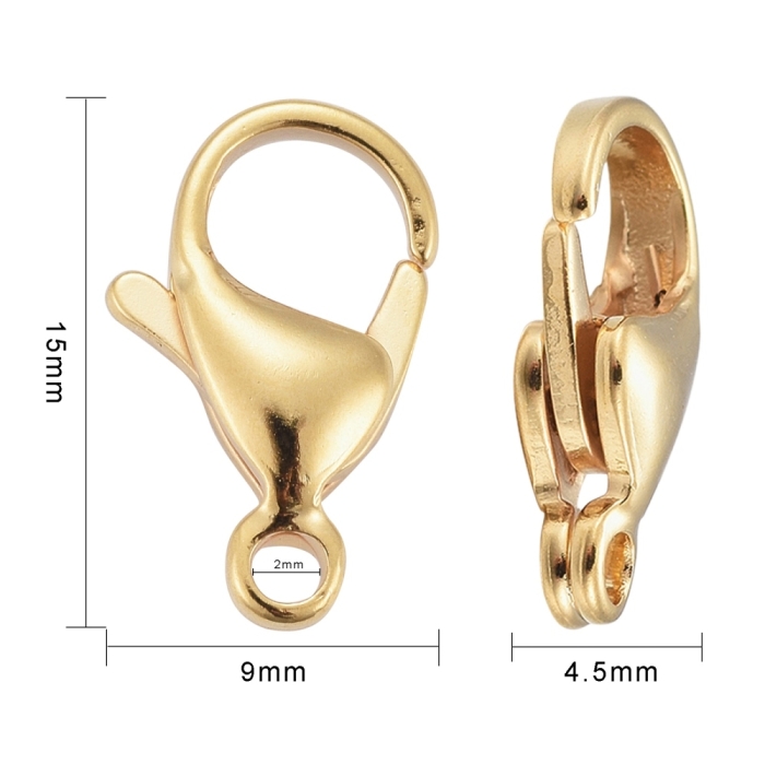 Застібка Карабін-Лобстер Нержавіюча Сталь, Позолота 24К, 15х9х4.5мм, Отвір 2мм, (УТ100029364)