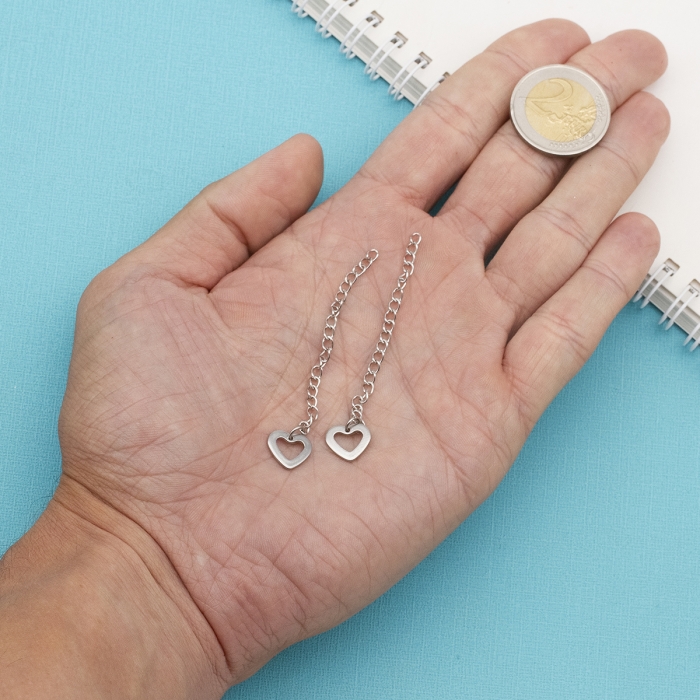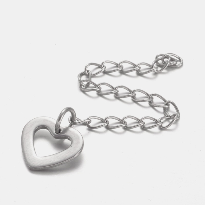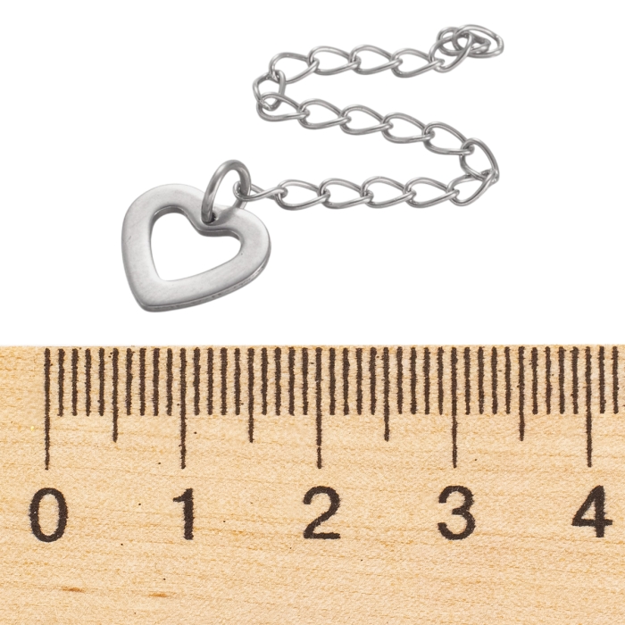 Ланцюжок подовжувальний з Підвіскою Серце, Нержавіюча Сталь, 60мм, Підвіска 10х11х1мм, (УТ100029403)