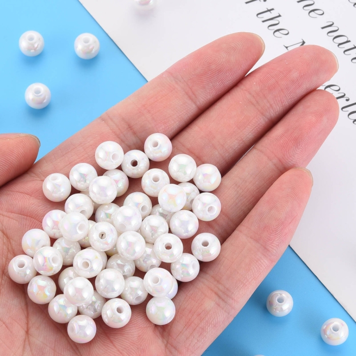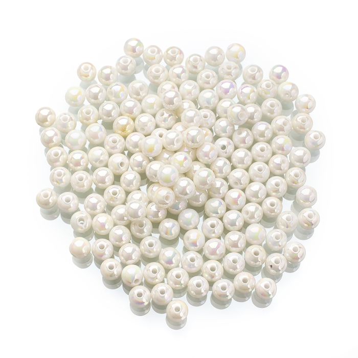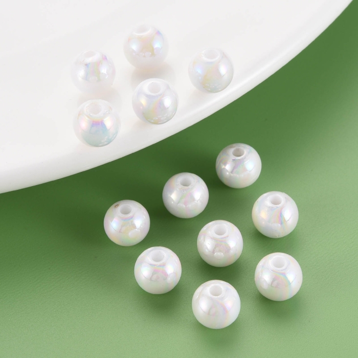Намистини Акрилові Круглі, Покриття АВ, Білий, 8х7мм, Отвір: 2мм, близько 160шт/50г, (УТ100029587)