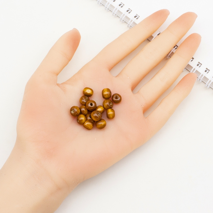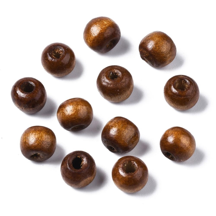 Намистини Дерев'яні Круглі Ручної Роботи, Коричневий, 8мм, Отвір 2мм, близько 280шт/50г, (УТ100029770)