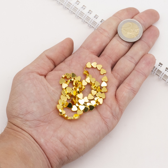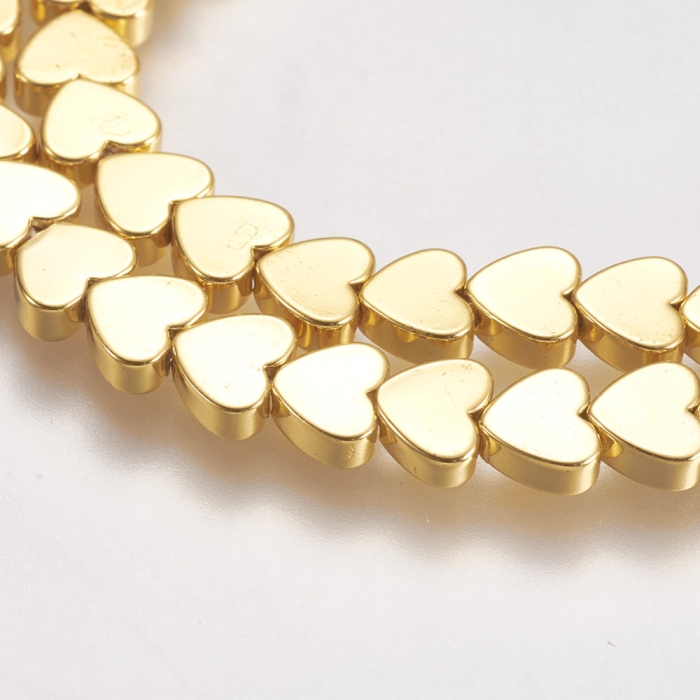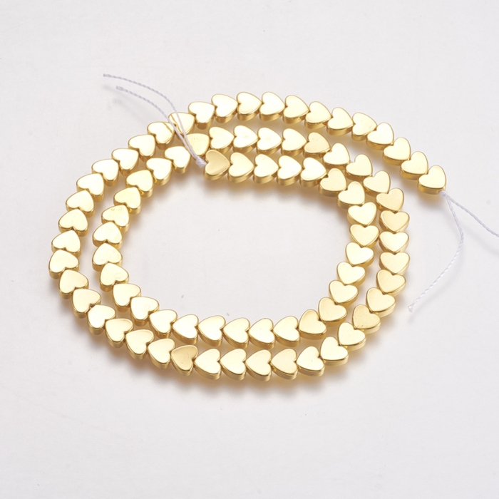 Намистини Синтетичний Гематит, Немагнітний, На нитках, Гальваніка, Серце, Позолота, 5х6х2мм, Отвір 1мм, близько 80шт/40.5см/нитка, (УТ100029813)