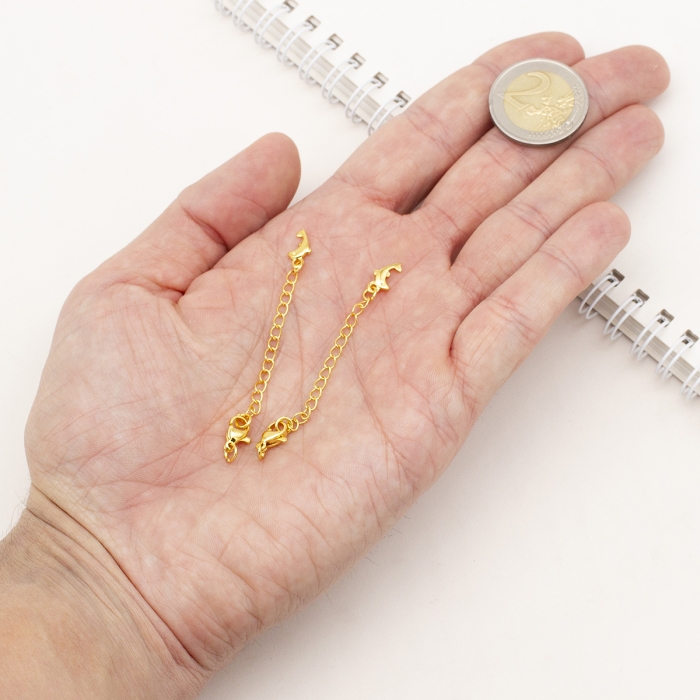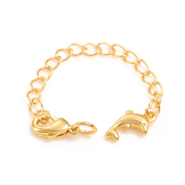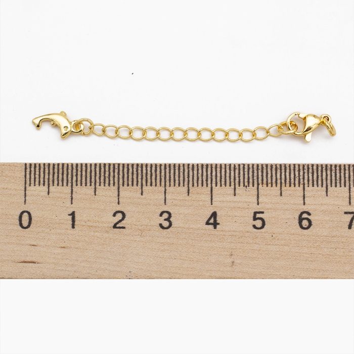 Ланцюжок подовжувальний Латунь з Підвіскою Дельфін і Застібкою Карабін-лобстер, Стійке Покриття, Позолота 14К, 73х3мм, (УТ100029888)