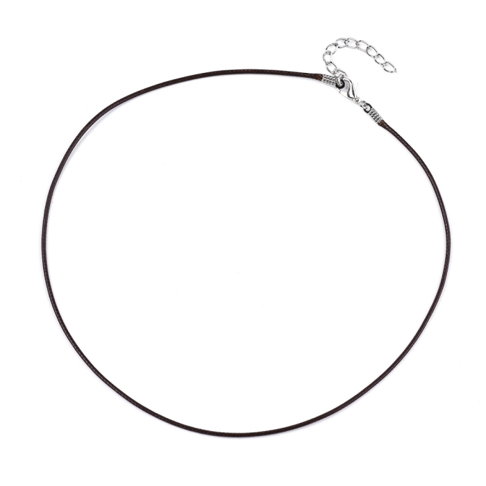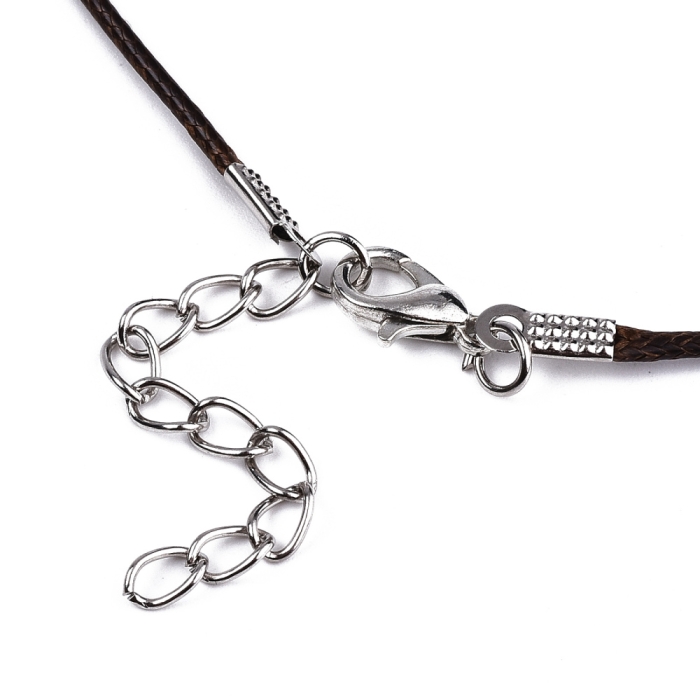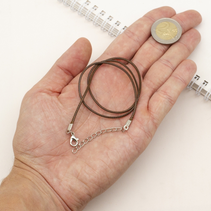 Основа для Намиста, Шнур Вощений Бавовняний, Застібка Карабін та Ланцюжок-Подовжувач, Кавова, 43х1.5мм, (УТ100030052)