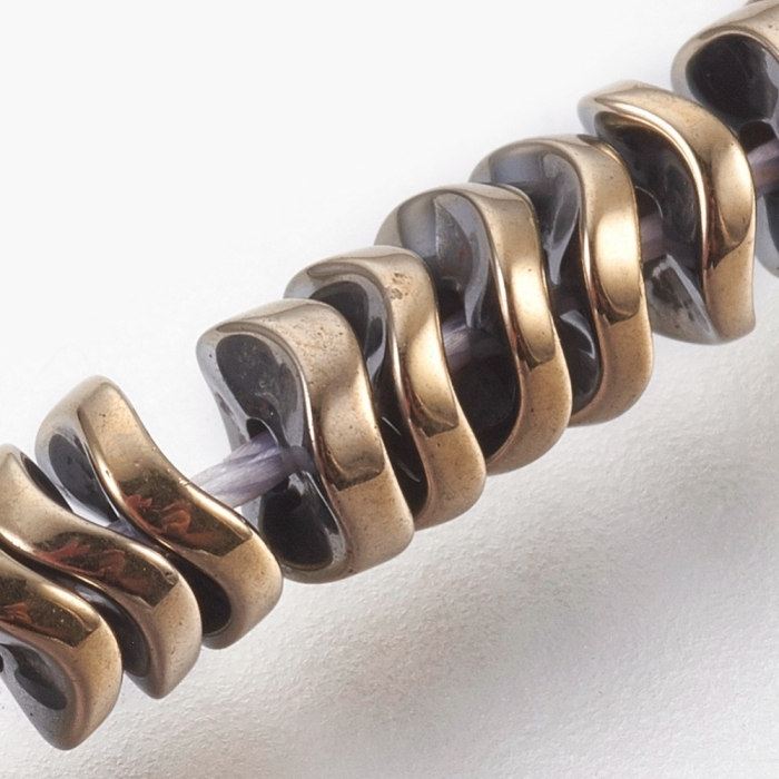 Намистини Синтетичний Гематит, Немагнітний, Гальваніка, На нитках, Хвилястий Диск, Бронза, 4х1.5мм, Отвір 0.5мм, 390шт/38см/нитка (УТ100030210)