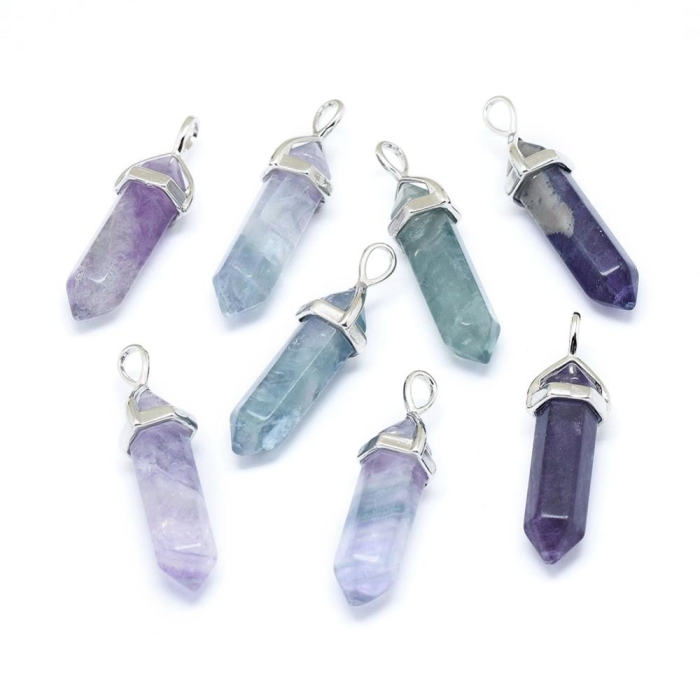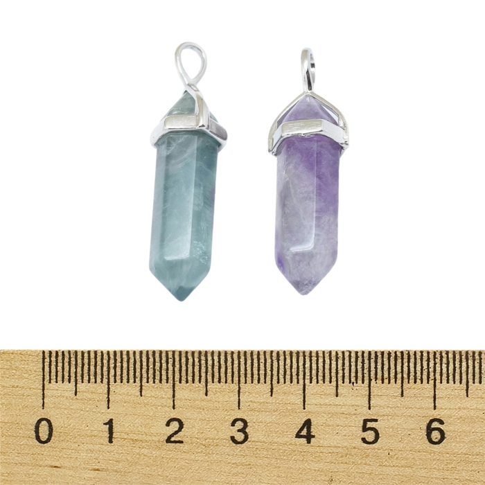 Кулон Натуральний Флюорит, Шестигранний, Фурнітура зі Сплаву, Колір: Платна, 39х10х12мм, Отвір 3х5мм, (УТ100031118)